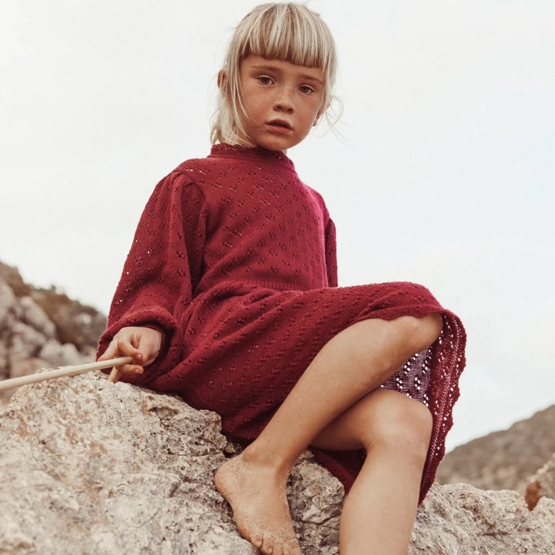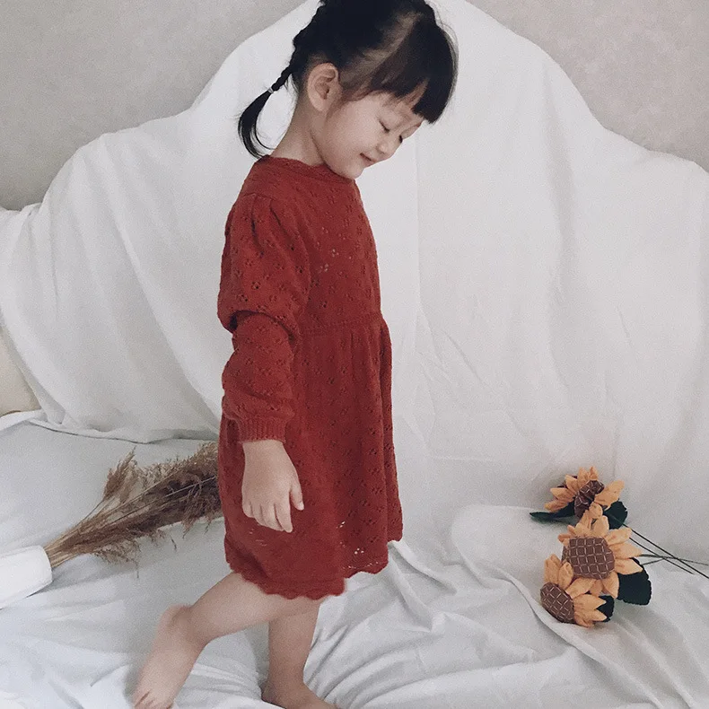 EuerDoDo/осенне-зимнее платье для девочек; Ажурные вязаные платья; Одежда с длинными рукавами для девочек; Повседневная детская одежда