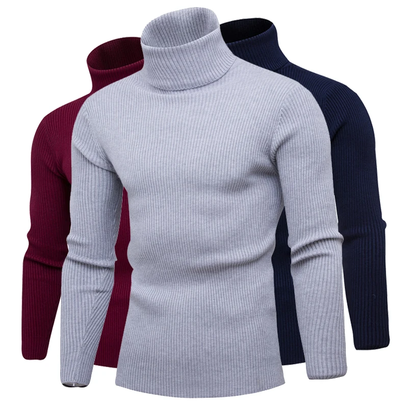 Зимний мужской теплый вязаный свитер, Однотонный свитер с длинным рукавом и высоким воротником, Повседневный свитер, джемпер