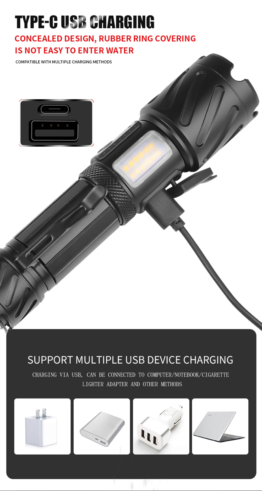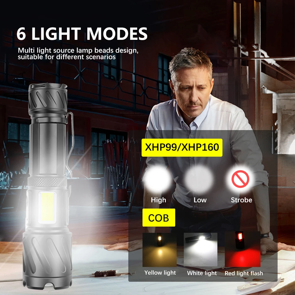 Длительное нажатие для включения боковой лампы COB: желтый светильник COB-белый светильник COB-красный светильник COB flash