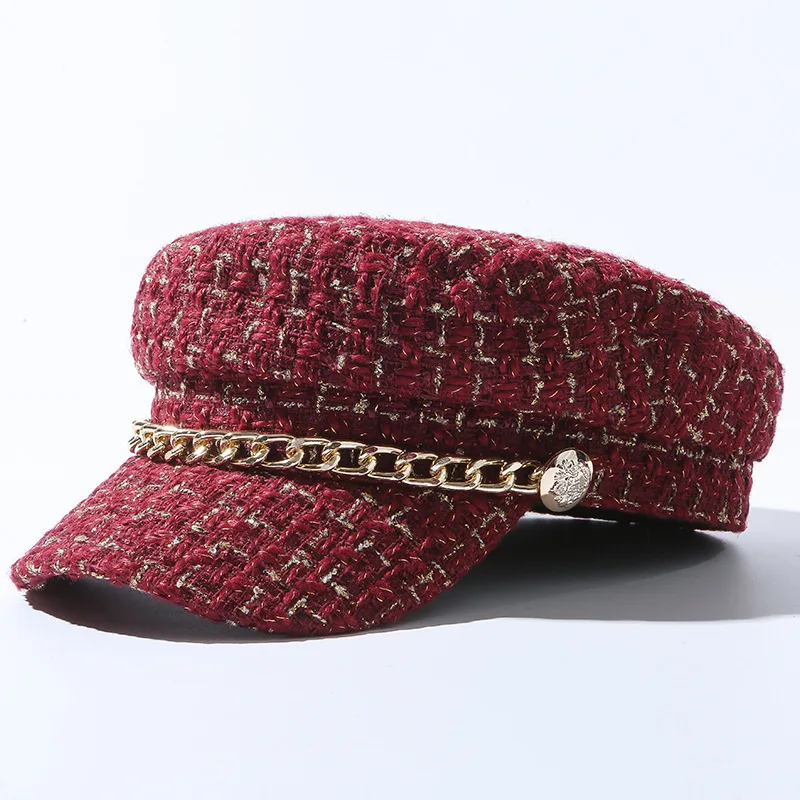 Женский осенне-зимний новый маленький аромат, темно-синий цвет, верх, необычная шерстяная шляпа, сетчатая красная восьмиугольная шляпа
