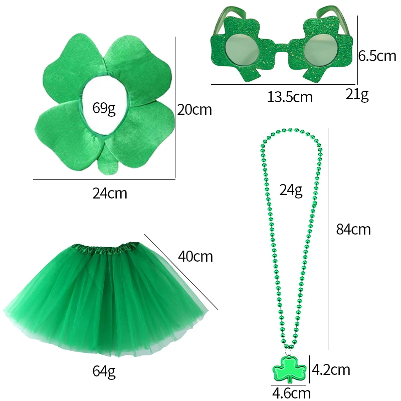 1. Название: St. День Патрика с ирландским клевером шляпа очки платье и ожерелье четыре карнавальные вечерние аксессуары зеленый Косплей Реквизит