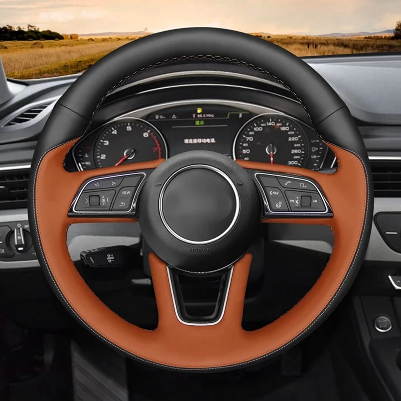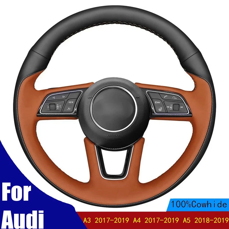 Прошитая вручную ткань, черный чехол из натуральной кожи, противоскользящий, мягкий, для Audi A3 2017-2019 A4 2017-2019 A5 2018-2019
