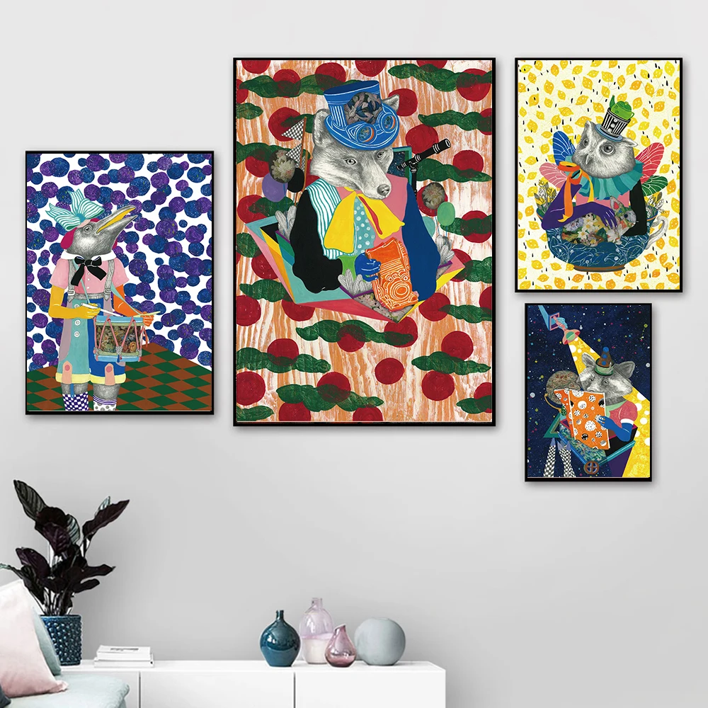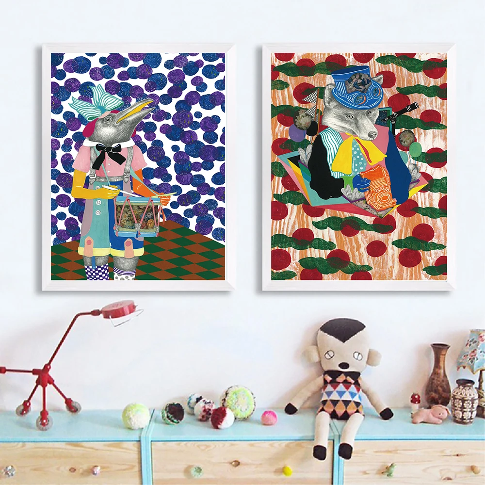 Абстрактные животные, книга для чтения, Настенная картина, детская Картина на холсте, скандинавские плакаты, настенные картины, украшение для детской комнаты и школы