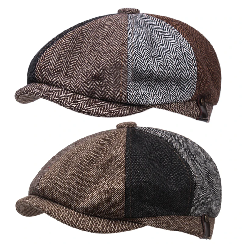 Винтажная кепка газетчика в елочку, мужская шапка газетчика в полоску, береты с прострочкой, осенне-зимняя мужская кепка художника