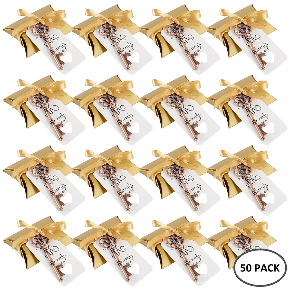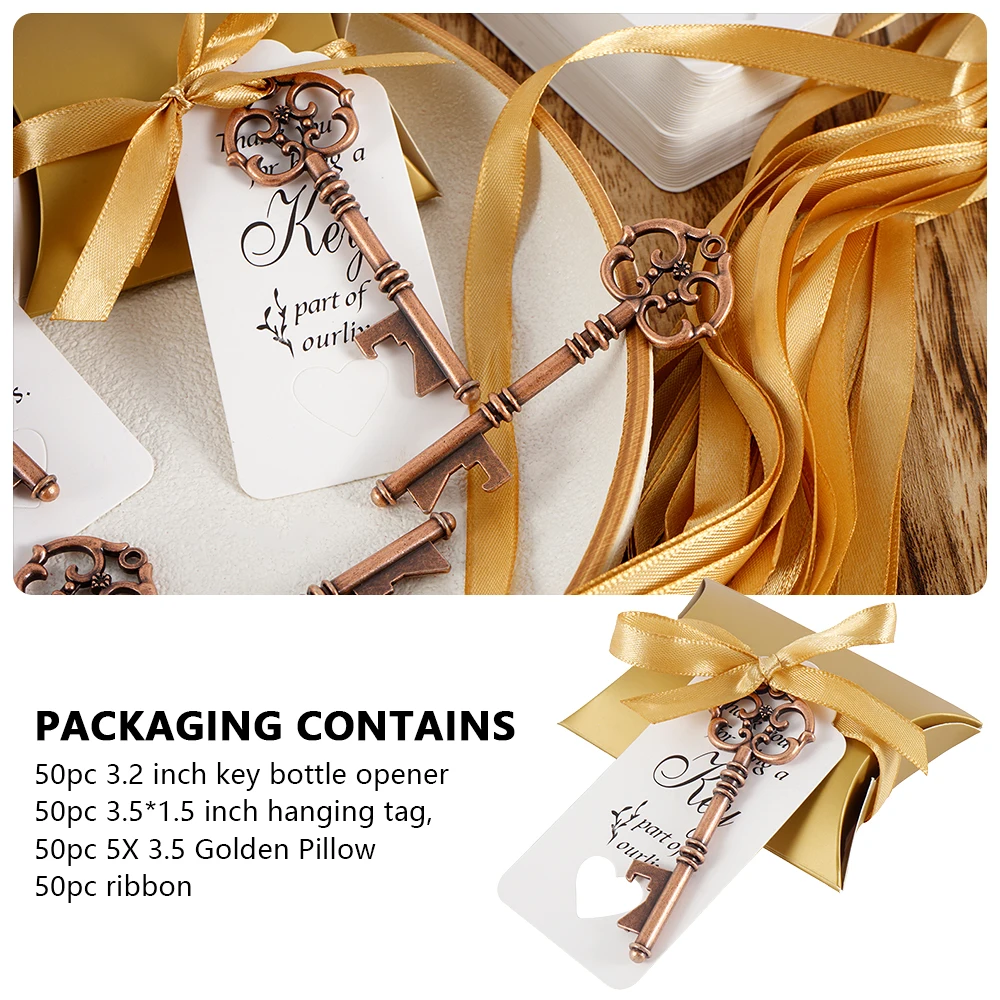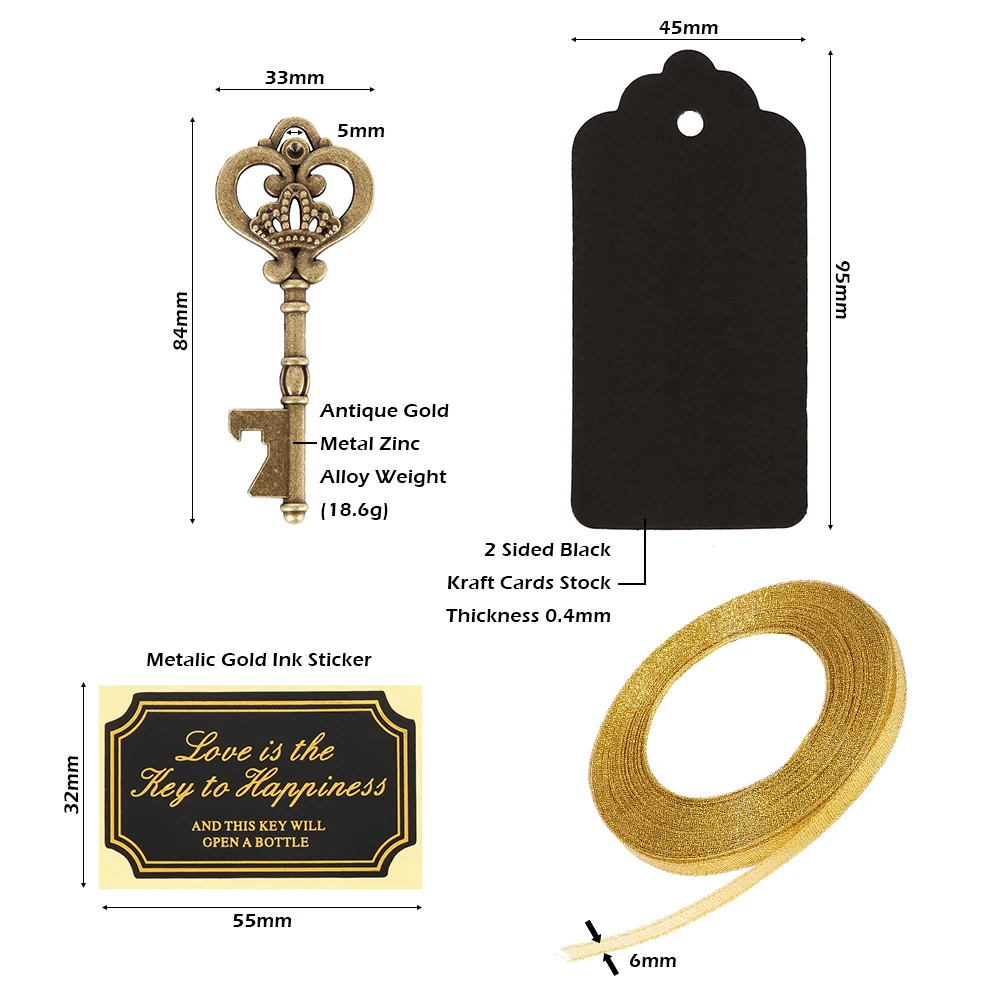 Посылка включает в себя: 50 шт. 3,2 дюймов ключ открывалка 50 шт. 3,5*1,5 дюймов, 50 шт. 5X3,5 Золотая Подушка карты 50 шт. ленты.