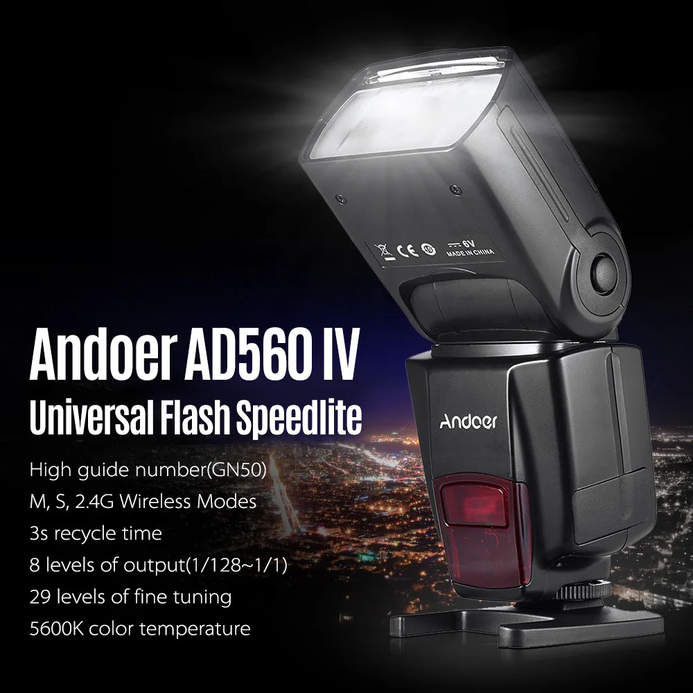Беспроводная вспышка Andoer AD560 IV Pro 2,4G Speedlite GN50 с диффузором для DSLR-камеры s