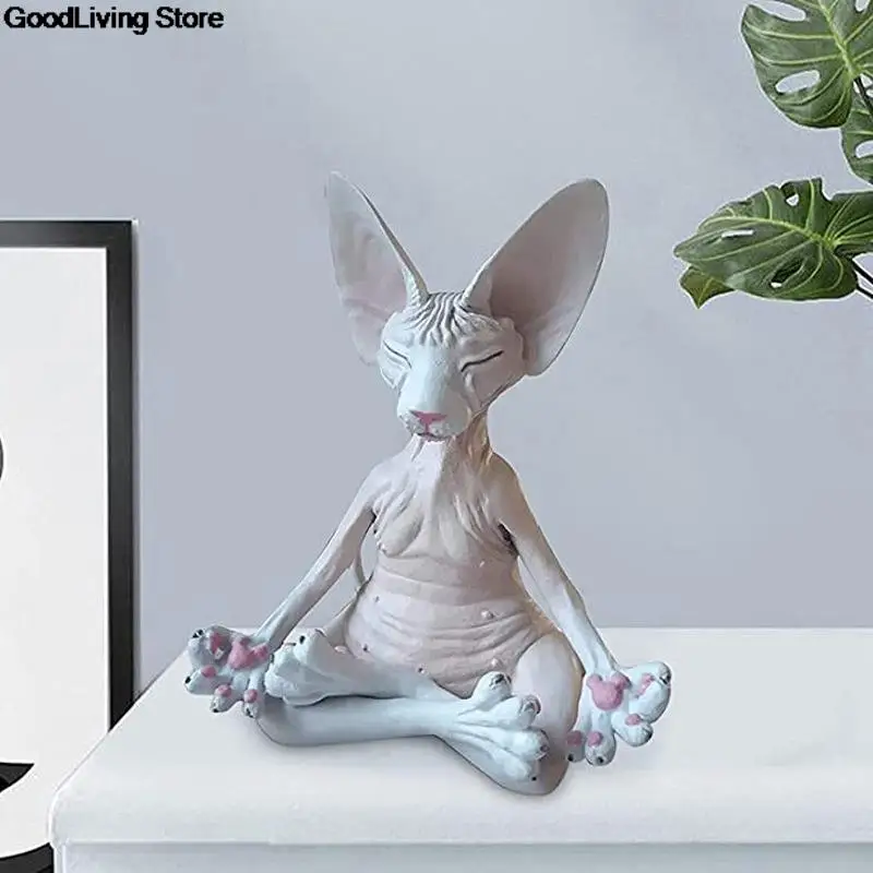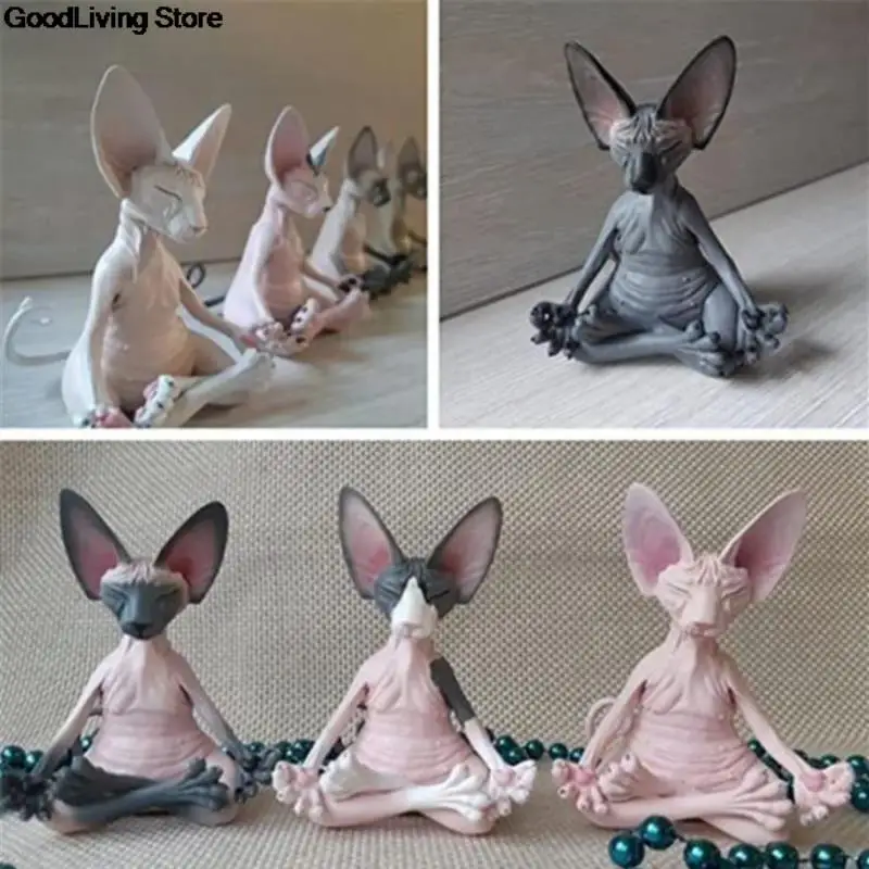 Домашний декор, Сфинкс, кошка, медитация, коллекционные фигурки, миниатюрная статуэтка кошки Будды, модель животного, кукла, игрушки, безволосая фигурка кошки