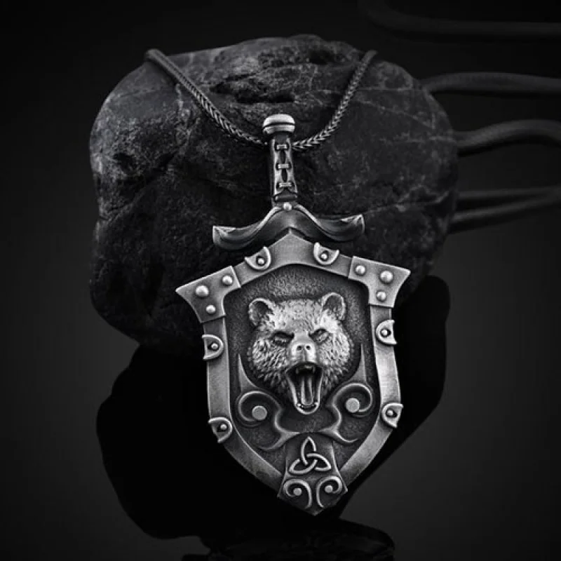 Винтажное Ожерелье В рыцарском стиле с изображением коричневого медведя и защитным мечом, изысканная ручная резная подвеска