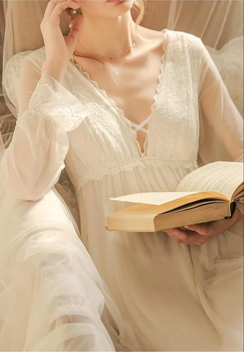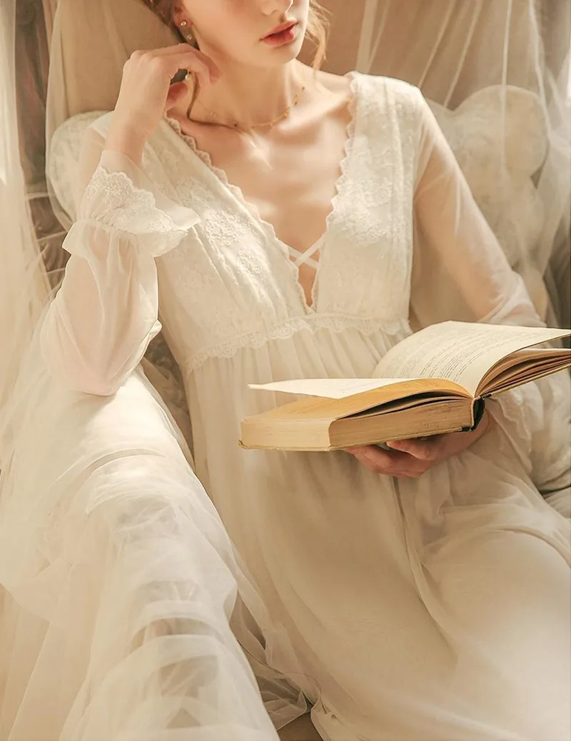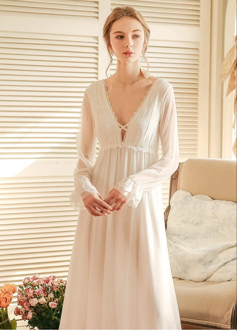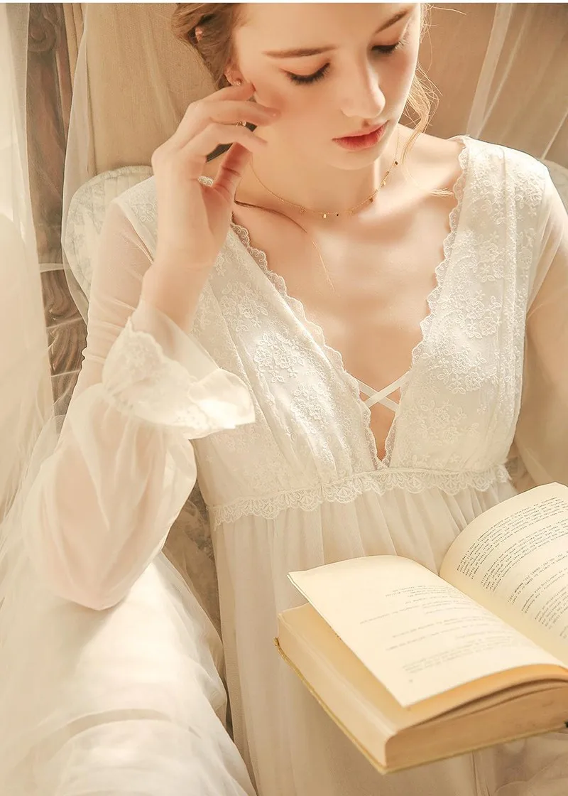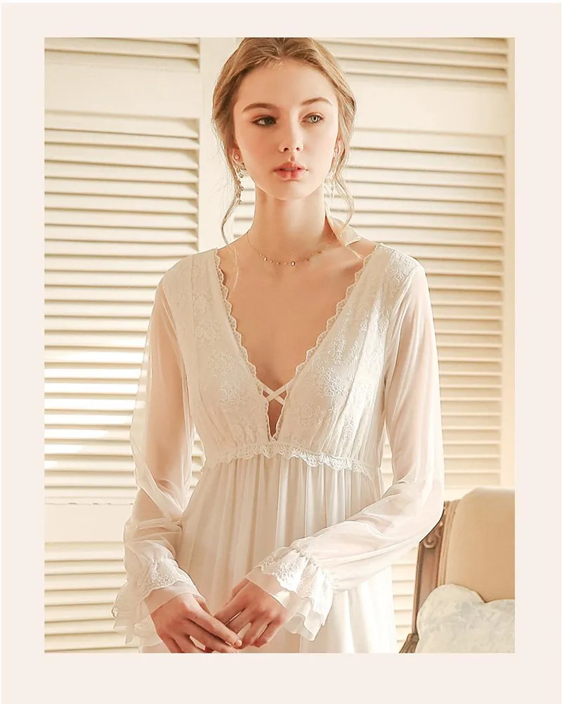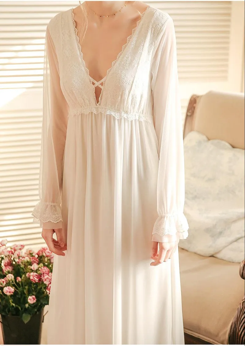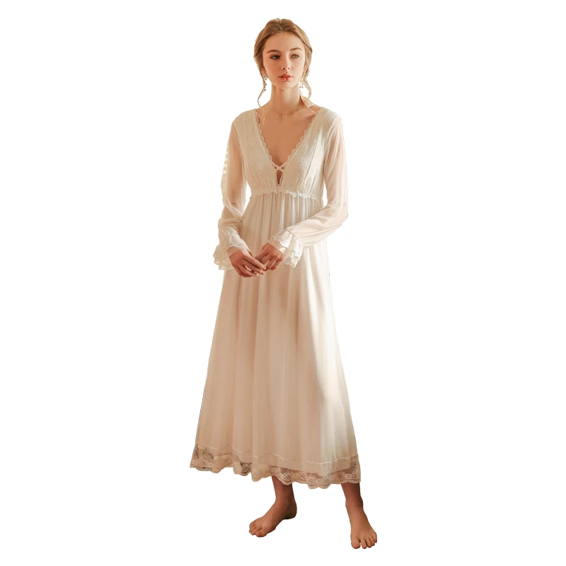 Ночная сорочка женская кружевная с V-образным вырезом и бюстгальтером