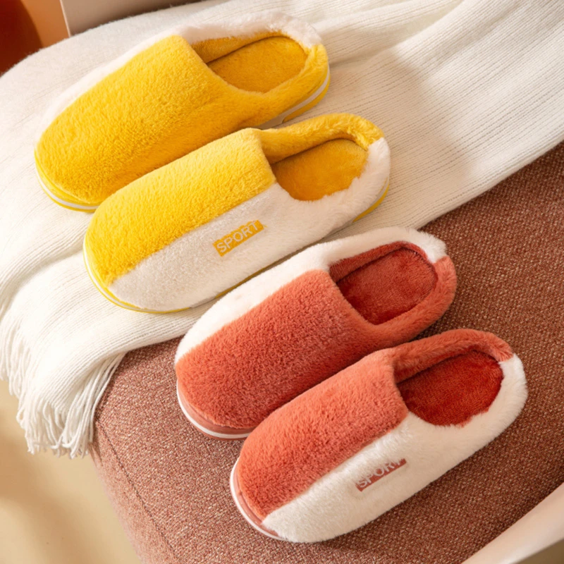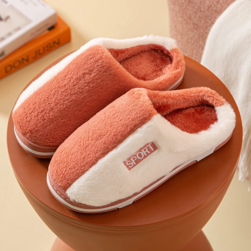 Женские зимние домашние тапочки, тапочки для влюбленных, двухцветная обувь, Нескользящие плюшевые удобные мягкие зимние шлепанцы для спальни