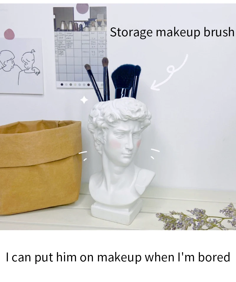 1. Креативность: Креативный держатель кистей для макияжа. Классические греческие чашечки для макияжа для кистей Michelangelo David Bust Statue. Вы можете положить ваши любимые румяна и помаду на этот красивый. Он является восхитительным украшением для вашего тщеславия.