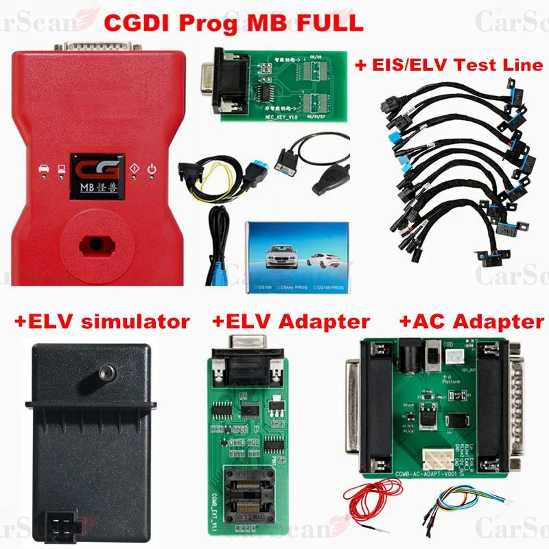 CGDI Prog MB для Benz, поддержка всех ключей, потерянный ключ, самый быстрый дополнительный ключ с адаптером ELV, симулятором и адаптером переменного тока, EIS ELV оригинальный CGDI для Benz