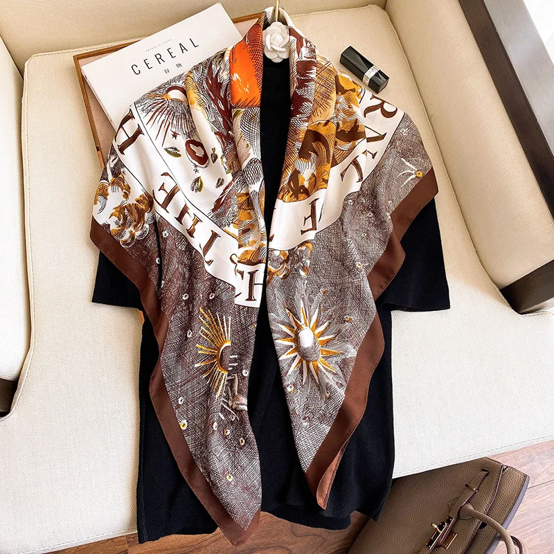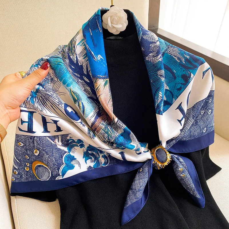 Квадратный шарф 90 см, шелковые женские шали с роскошным брендовым ...