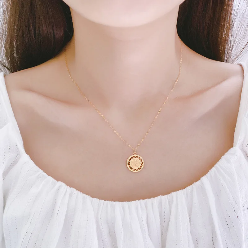 Цепочка YUNLI из настоящего 18-каратного золота с подвеской в винтажном стиле с цепочкой из 18-каратного золота для женщин, ювелирные изделия в подарок PE031