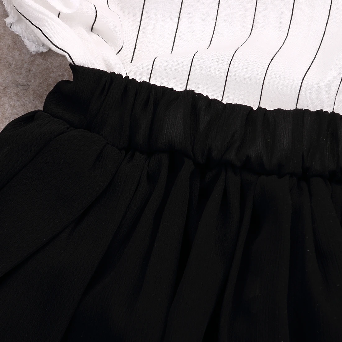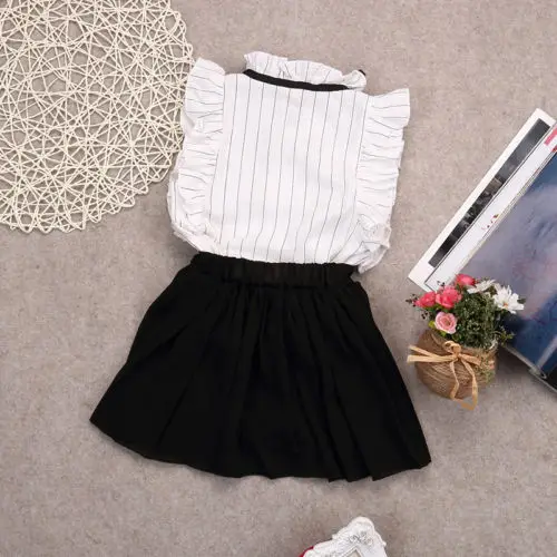 Повседневная рубашка и юбка-брюки для маленьких девочек, комплект из двух предметов, однобортная блузка без рукавов в полоску с летающими рукавами, Однотонная юбка