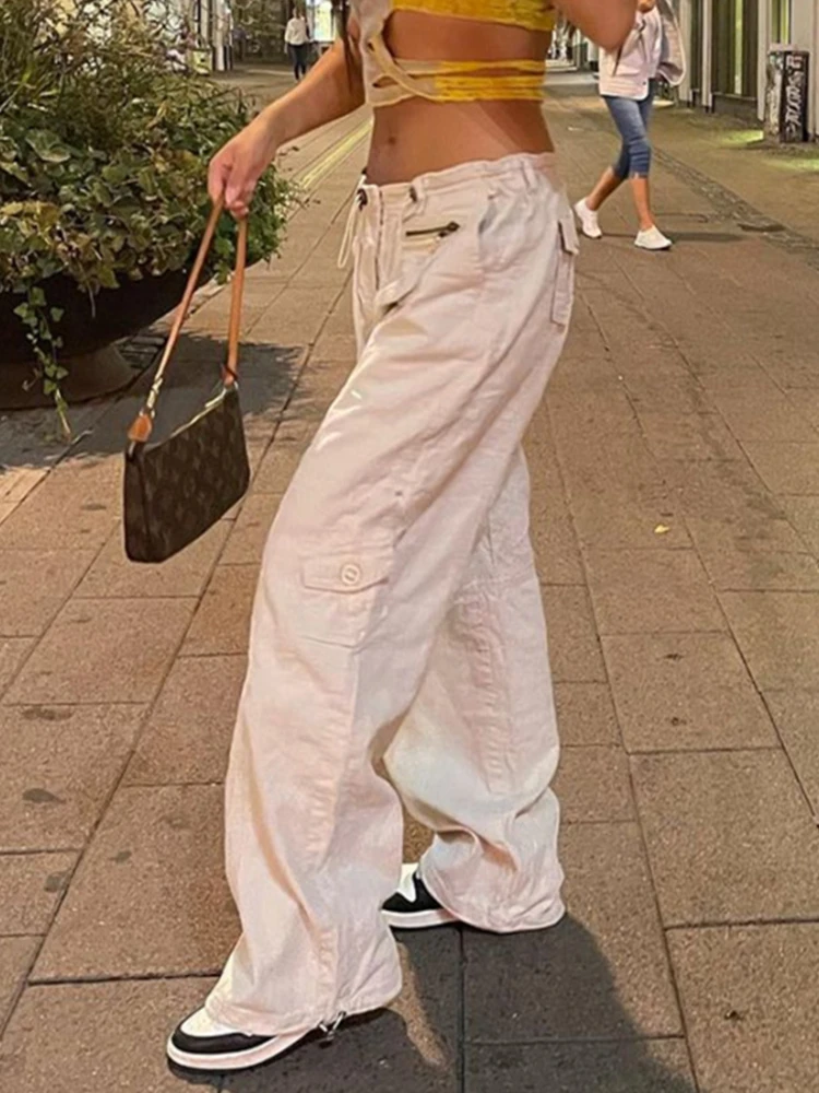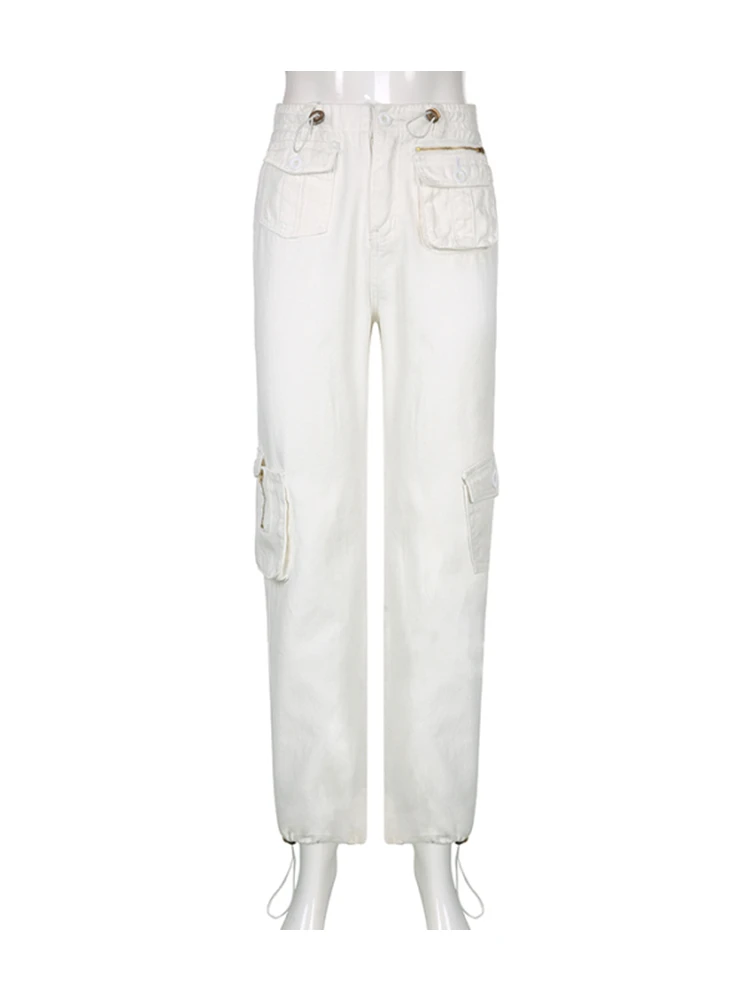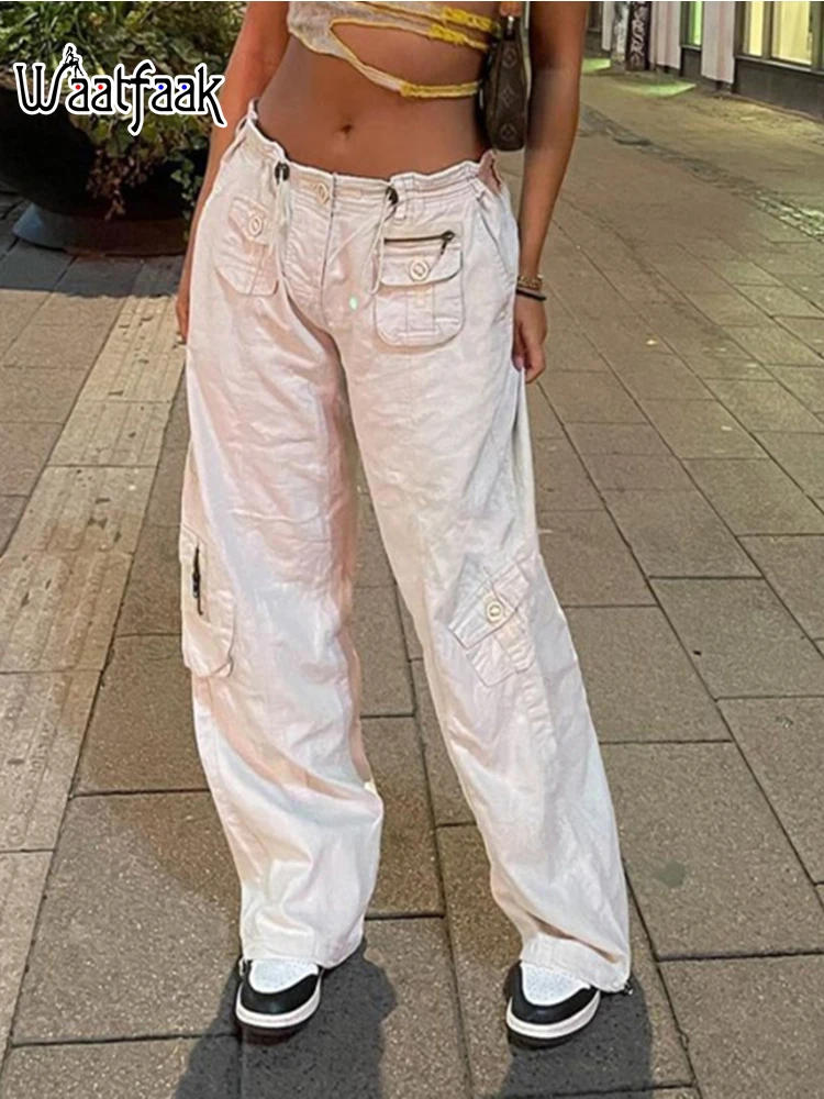 Винтажные мешковатые джинсы-карго Waatfaak с высокой талией, женские белые гранж-джинсы в стиле Харадзюку, корейские джинсы-бойфренды с завязками, 2021