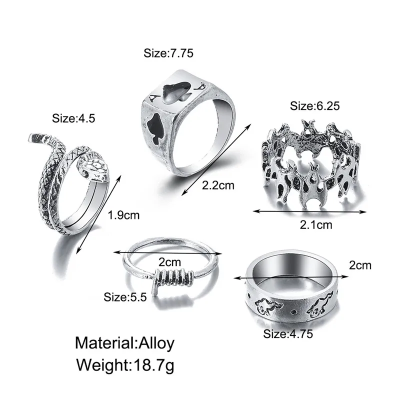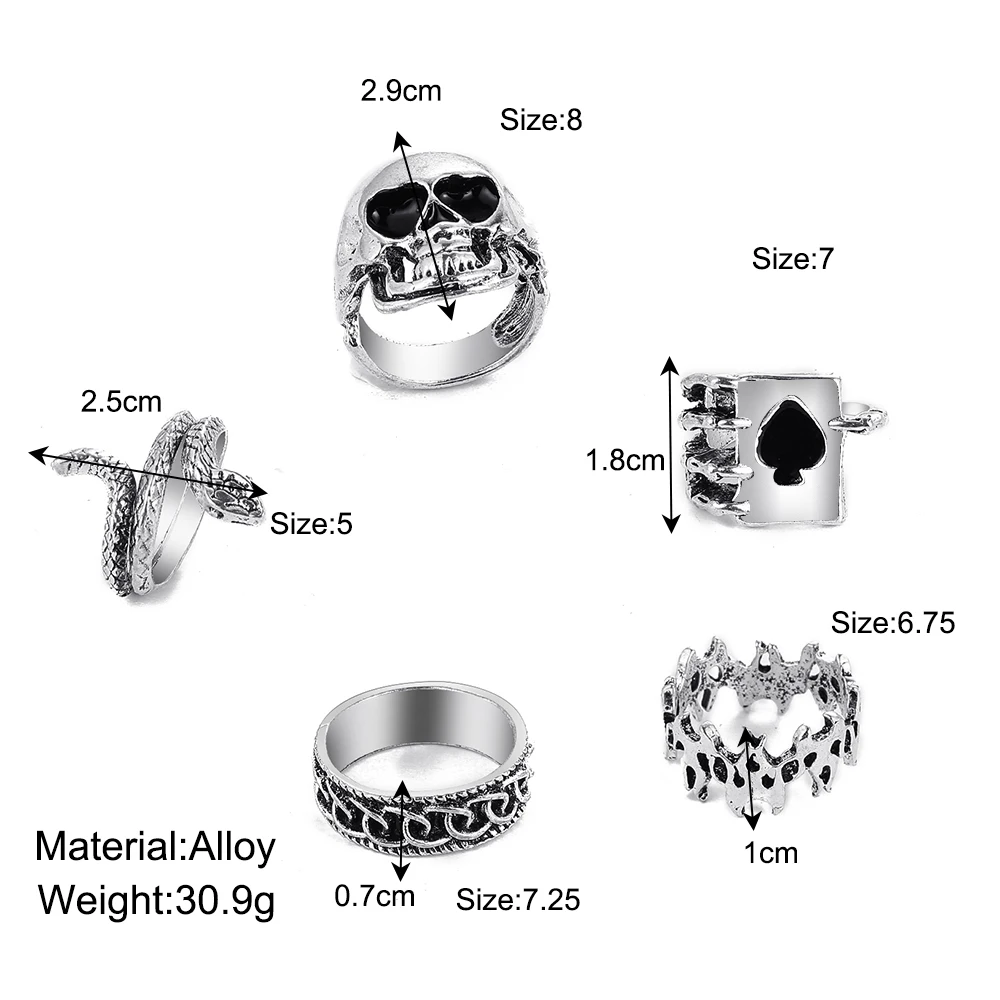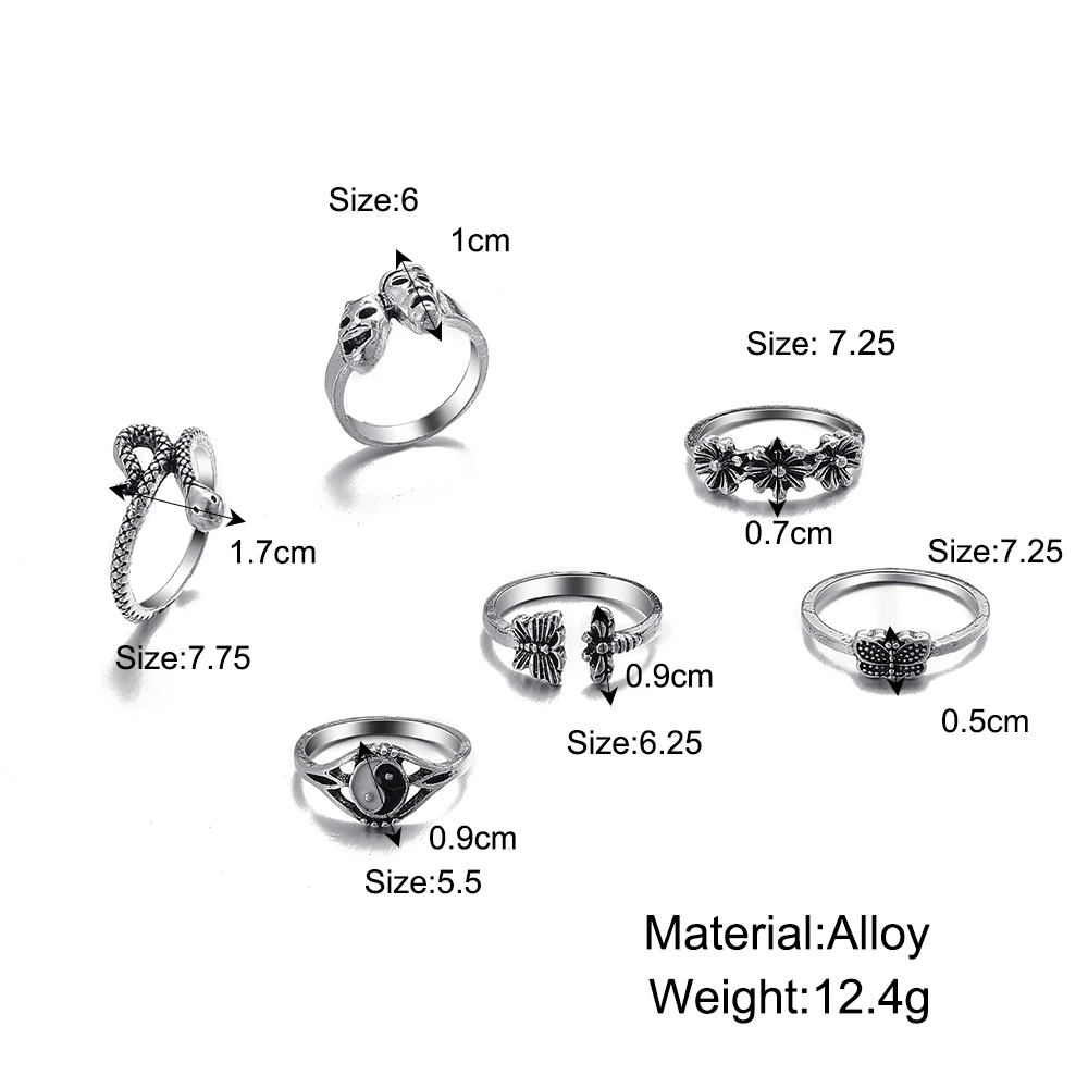 Набор колец в винтажном стиле для женщин и мужчин, серебристого цвета, в готическом стиле, кольца в стиле ретро, модные ювелирные украшения, 2021
