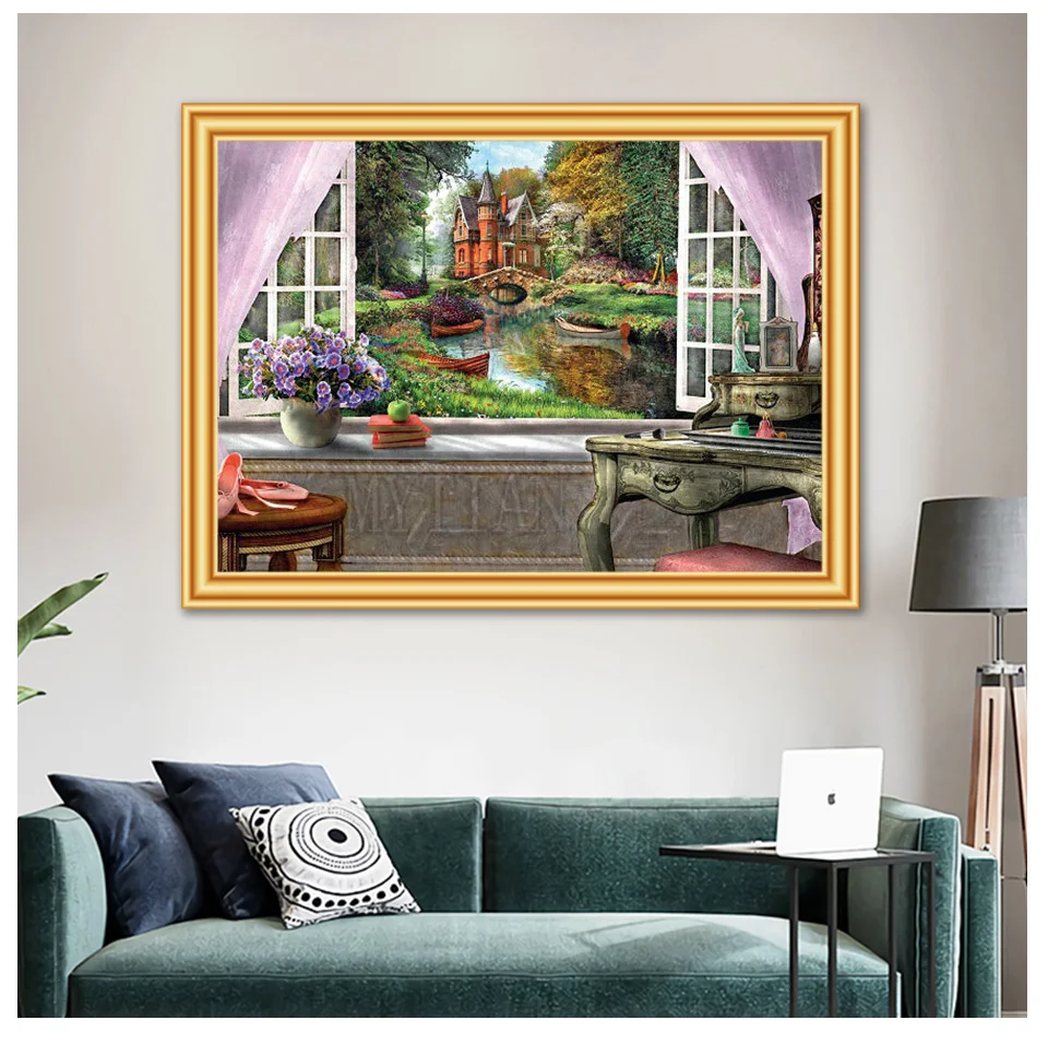 Алмазная 5D картина сделай сам, наборы для вышивки крестиком с изображением пейзажа на улице, мозаика, декор Стразы