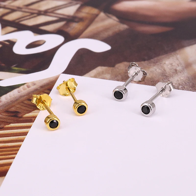 Женские серьги-гвоздики из серебра 925 пробы с инкрустацией черным цирконием