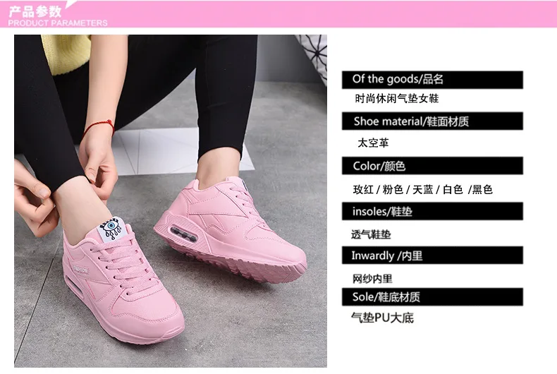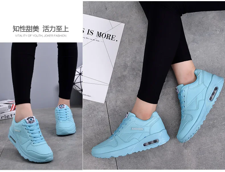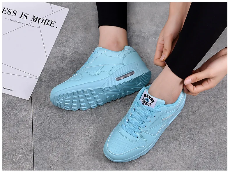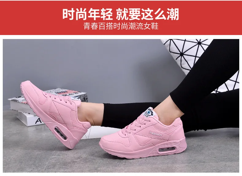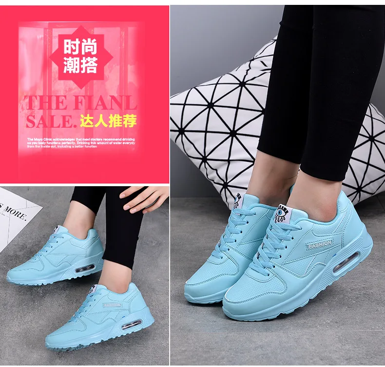 Кроссовки женские из экокожи, спортивная обувь на воздушной подушке, синие, белые, розовые, для прогулок и бега