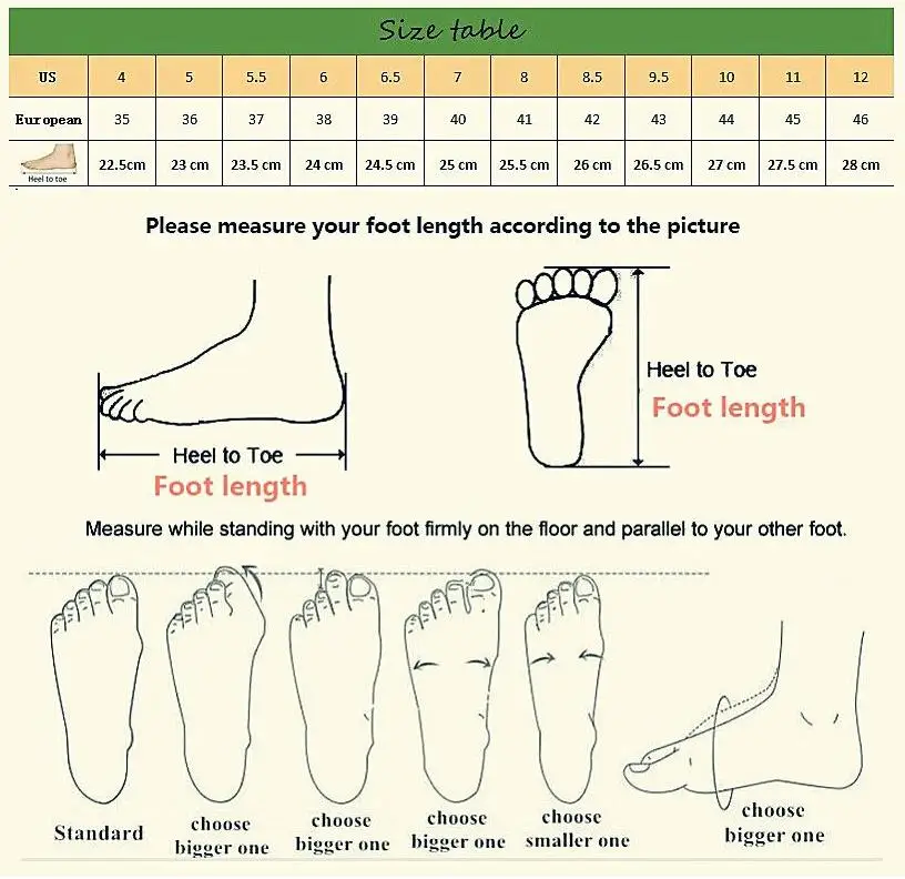 5. Длина левой и правой стопы может немного отличаться, Пожалуйста, измерьте больший размер.