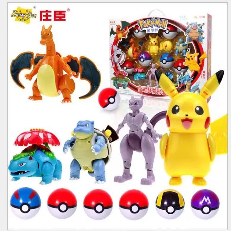 6 шт.партия оригинальный Покемон, монстр, покебол, деформация, Пикачу, Дженни, тираннозавр, Charizard, аниме фигурка, подвижная качественная модель