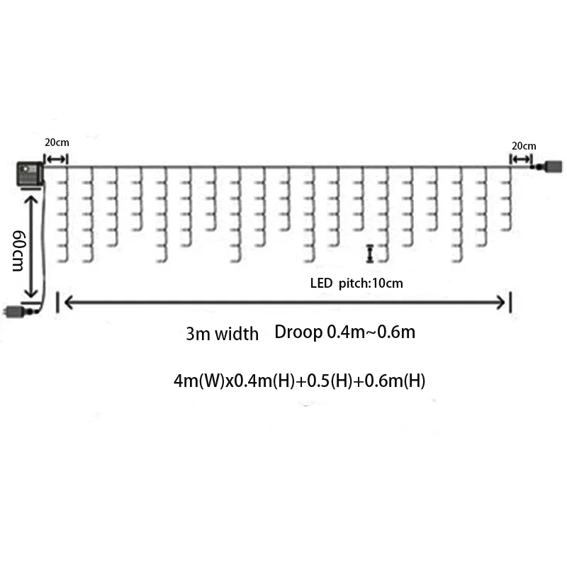 Рождественская гирлянда, светодиодная гирлянда-занавес в виде сосулек, s, свисающая гирлянда 0,4-0,6 м, 220 В переменного тока, уличное декоративное праздничное светильник для сада
