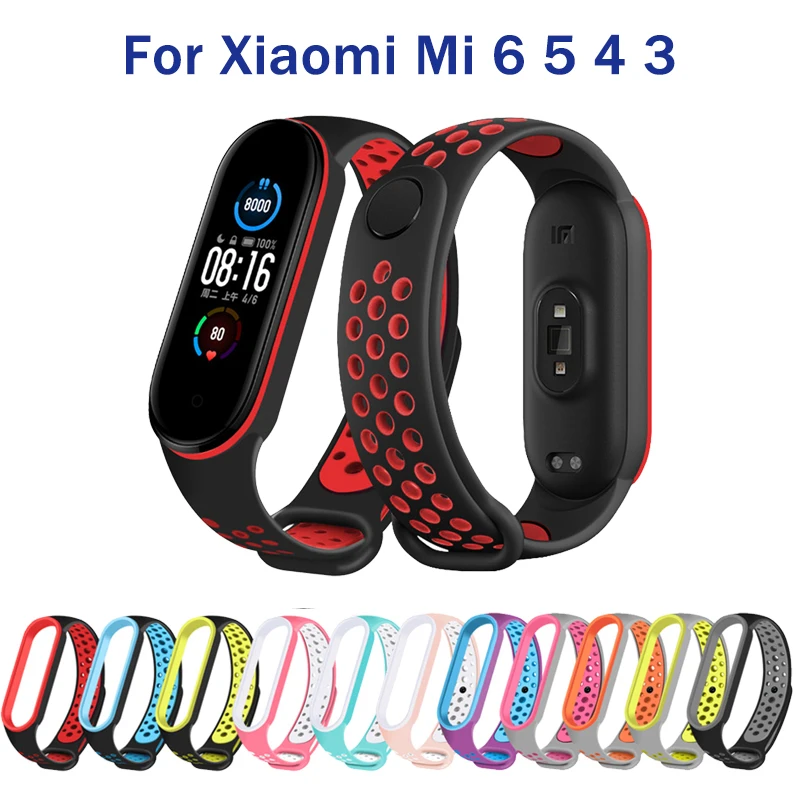 Двухцветный дышащий силиконовый ремешок для Xiaomi Mi band 6 5 4, м...