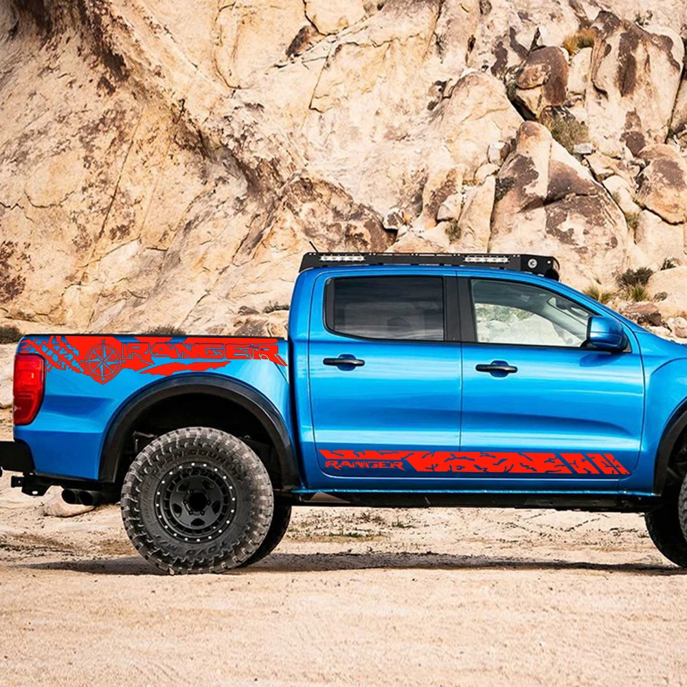 2 шт. боковые наклейки для кузова автомобиля, юбка, полоса, принт, виниловые длинные большие наклейки, Декор, спортивное украшение, аксессуары для Ford Ranger