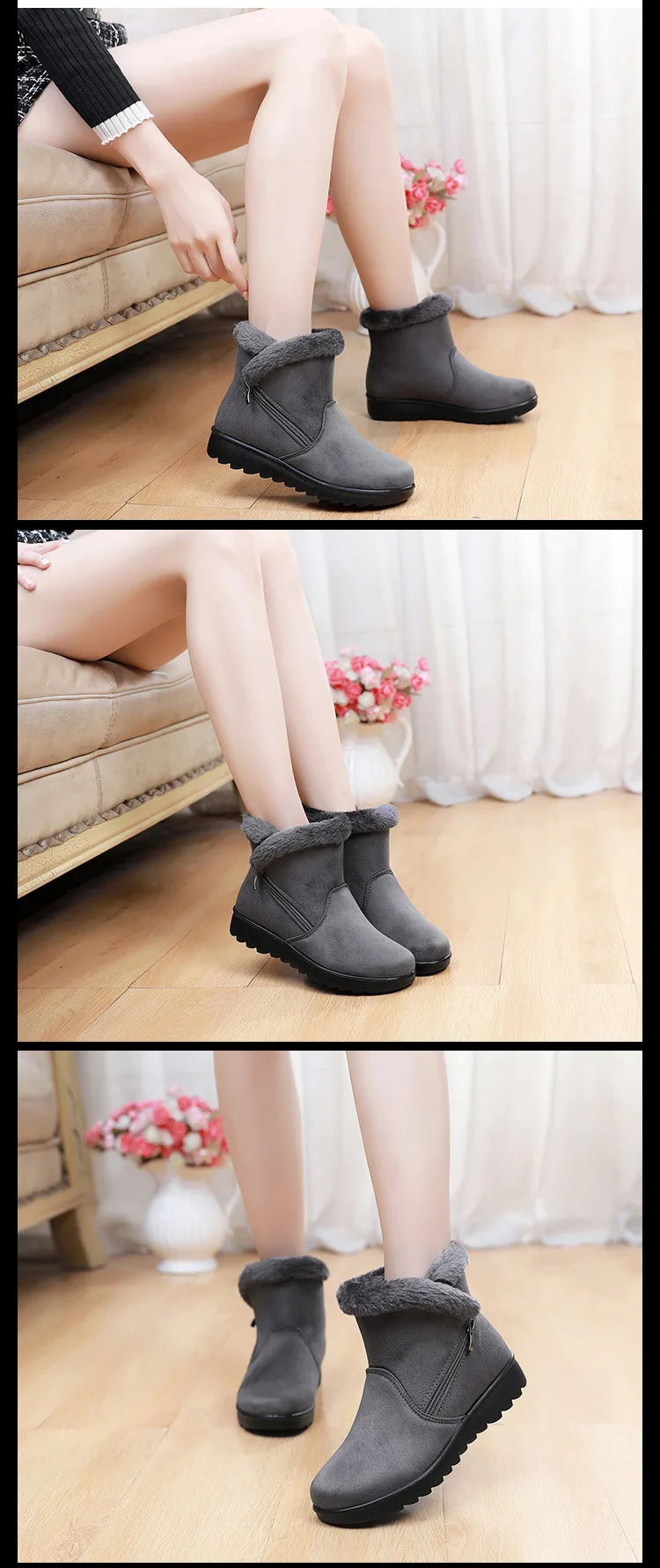 Ботильоны женские зимние, Нескользящие, теплые, на молнии, с плюшевой подкладкой