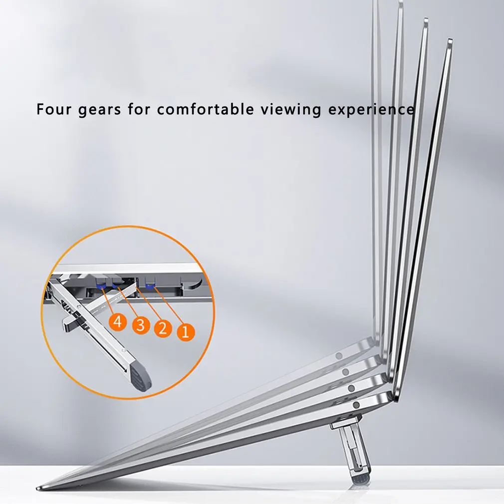 1. Регулируемый и эргономичный: 4 высоты экрана ноутбука могут быть свободно отрегулированы для идеальной высоты глаз, что позволяет зафиксировать осанку и уменьшить усталость шеи, боль в спине и напряжение глаз. Очень удобно для работы дома, в офисе и на открытом воздухе.