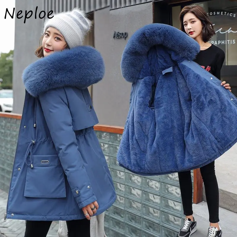 Зимняя Новинка 2022, теплые парки Neploe для женщин, бархатные плотные пуховики с подкладкой, Женская однобортная толстовка с капюшоном, Женская куртка-пуховик