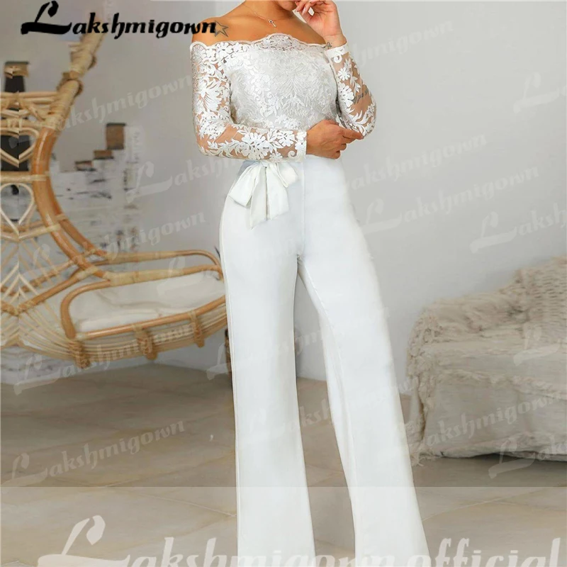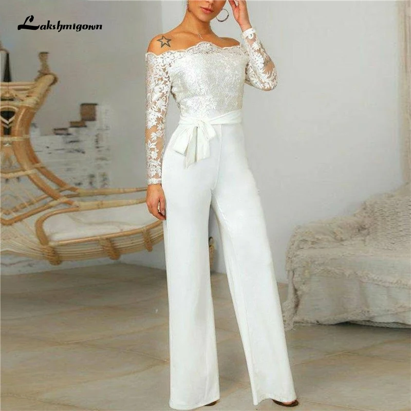 Свадебный комбинезон с длинным рукавом 2022 Свадебные платья с открытыми плечами комбинезон для невесты для приема Свадебные брючные костюмы Vestido De Noiva