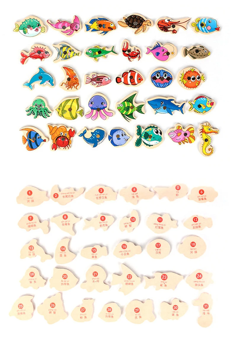 Деревянная Магнитная рыболовная игрушка, познавательная рыболовная ...