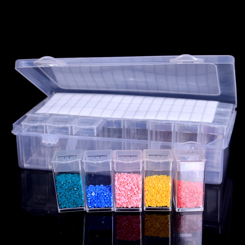 Высокое качество. Коробка для хранения алмазных принадлежностей изготовлена из прозрачного материала PP, экологически чистый, прочный и прочный, практичный и устойчивый к повреждениям.