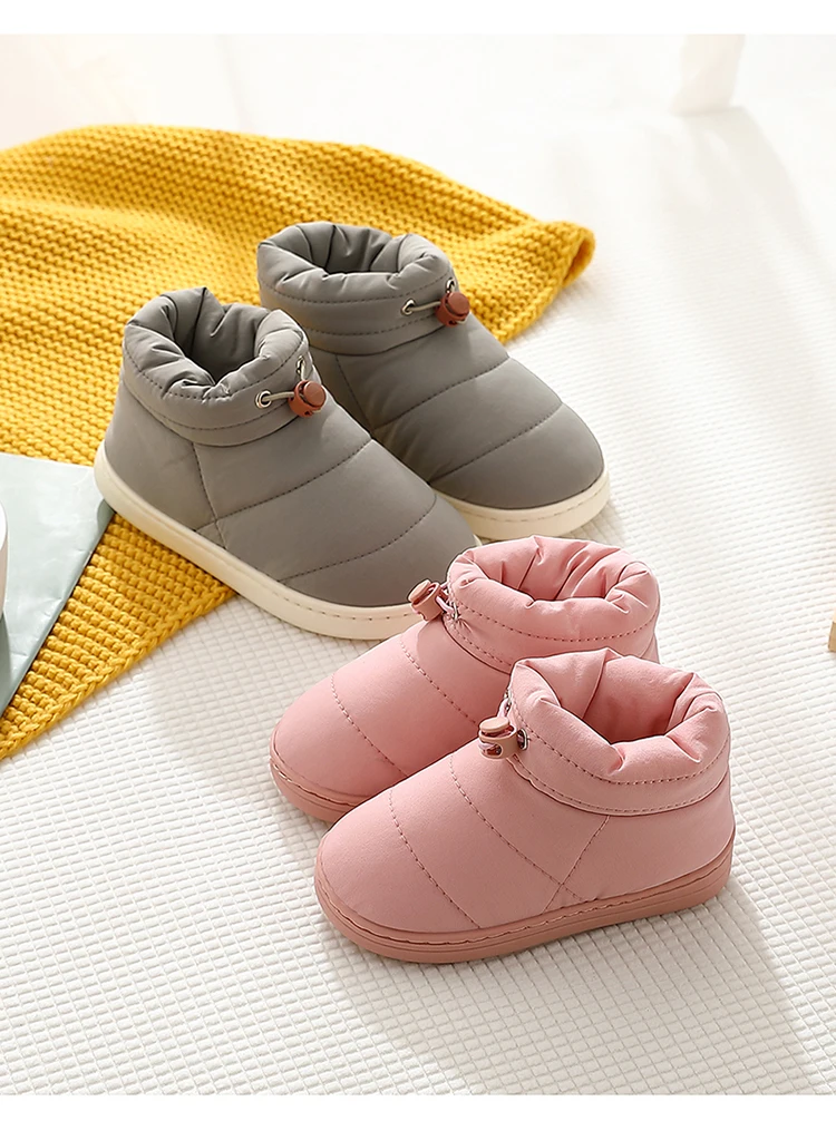 Мужские и женские зимние ботинки на пуху, теплые плюшевые ботильоны для снега, женские толстые ботинки на шнуровке, обувь для пары, для малышей, домашняя меховая обувь