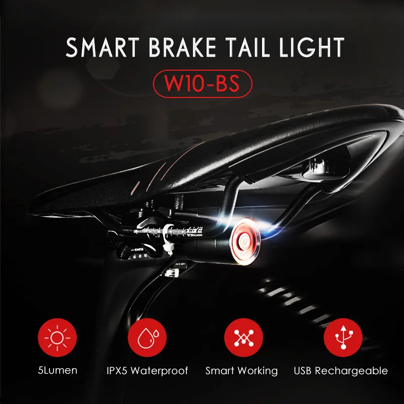 Задний фонарь GACIRON велосипедный Аккумуляторный с датчиком торможения и зарядкой от USB