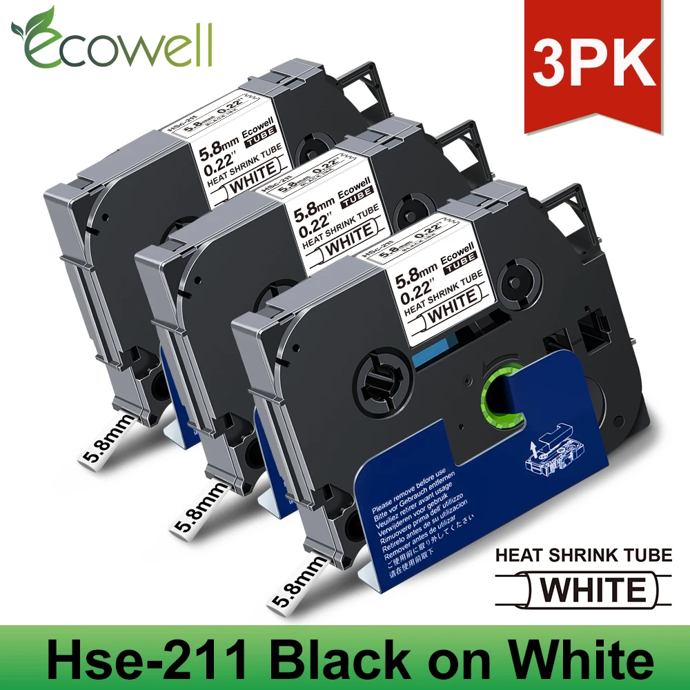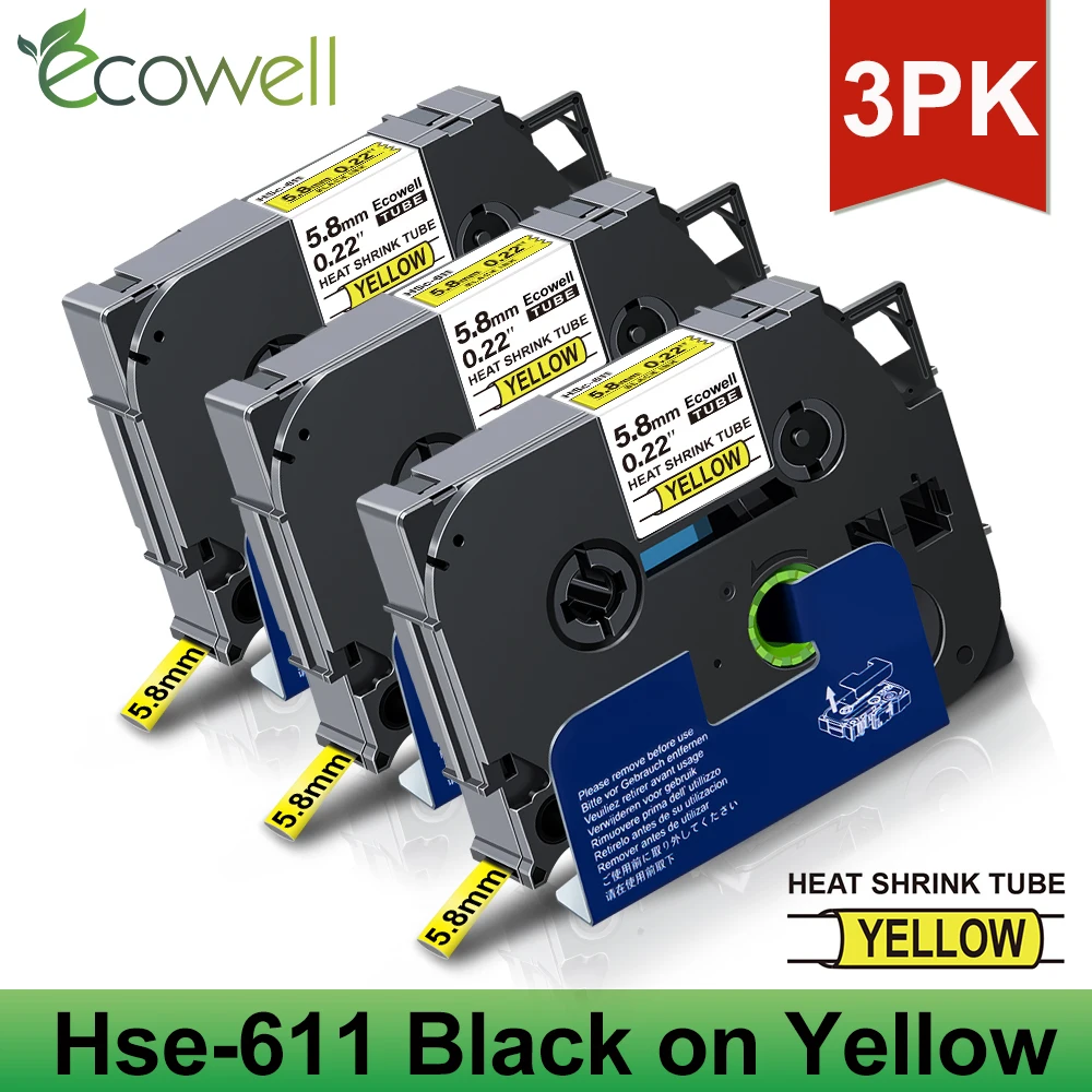 Термоусадочные трубки Ecowell 3PK, ленты, совместимые с Brother Hse-211 Hse 211 hse 611, бело-желтые этикетки для сенсорного принтера P