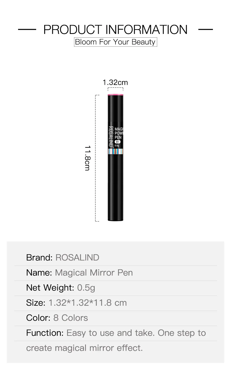 Характеристики Товара:Название бренда: ROSALINDНазвание: волшебная зеркальная ручкаЧистая Вес: 0,5 гРазмер: 1,32*1,32*11,8 смЦвет: 2 цвета sФункция: Простота в использовании и использовании. Один шаг, чтобы создать волшебный зеркальный эффект.-Качество-наш первый приоритет.-Светильник, почти без запаха (только верхнее покрытие и основа имеют умеренный запах), мы применяем только органическую текстуру для защиты вашего здоровья.-Цвет будет сиять до 30 дней.-Цвета на выбор, подходят для всех случаев.Шаг за шагом:-1. Форма ногтя. Слегка смочите поверхность ногтевой пластины. Дезинфицировать.-2. Нанесите базовый слой основы от кутикулы до свободного края (не забудьте запечатать край ногтя). Высушите ногти под светодиодный светильник в течение 10 секунд или УФ-светильник в течение 2 минут.-3. Нанесите базовый цвет отмачиваемого гель-лака. Свободный край крышки. Лечение: 30 секунд в светодиодный светильник, или 2 минуты в УФ-лампе. (эффект будет лучше с черным цветом гель-лака.)-4. Нанесите верхнее пальто. Свободный край крышки. Лечение: 30 секунд в светодиодный светильник.-5.окуните порошок воздушной подушкой ручки и закрепите его на поверхности ногтя.-6. Нанесите верхнее пальто. Свободный край крышки. Лечение: 30 секунд в светодиодный светильник.-7. Удалите липкий остаток на ногтях с помощью очищающего средства. Затем нанесите питающее масло кутикулы для увлажнения влаги в кутикулу и кожу вокруг ногтя.Для удаления:-1. Отмачивайте ногти в акриловом удалителе в течение 5 минут.-2. Аккуратно Наденьте на каждый ноготь всю эмаль для ногтей.Внимание:Держите плотно закрытыми. Хранить в недоступном для детей месте.