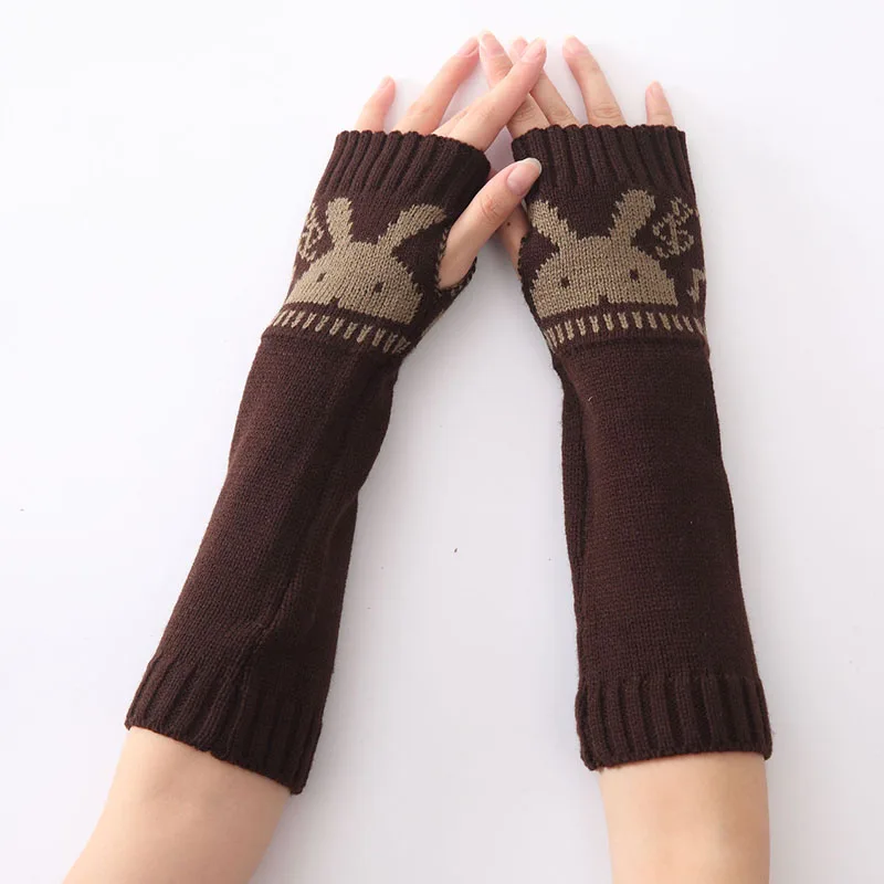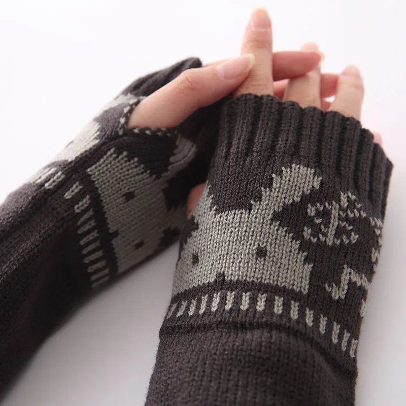 Зимние теплые женские перчатки однотонные вязаные теплые длинные перчатки без пальцев женские перчатки