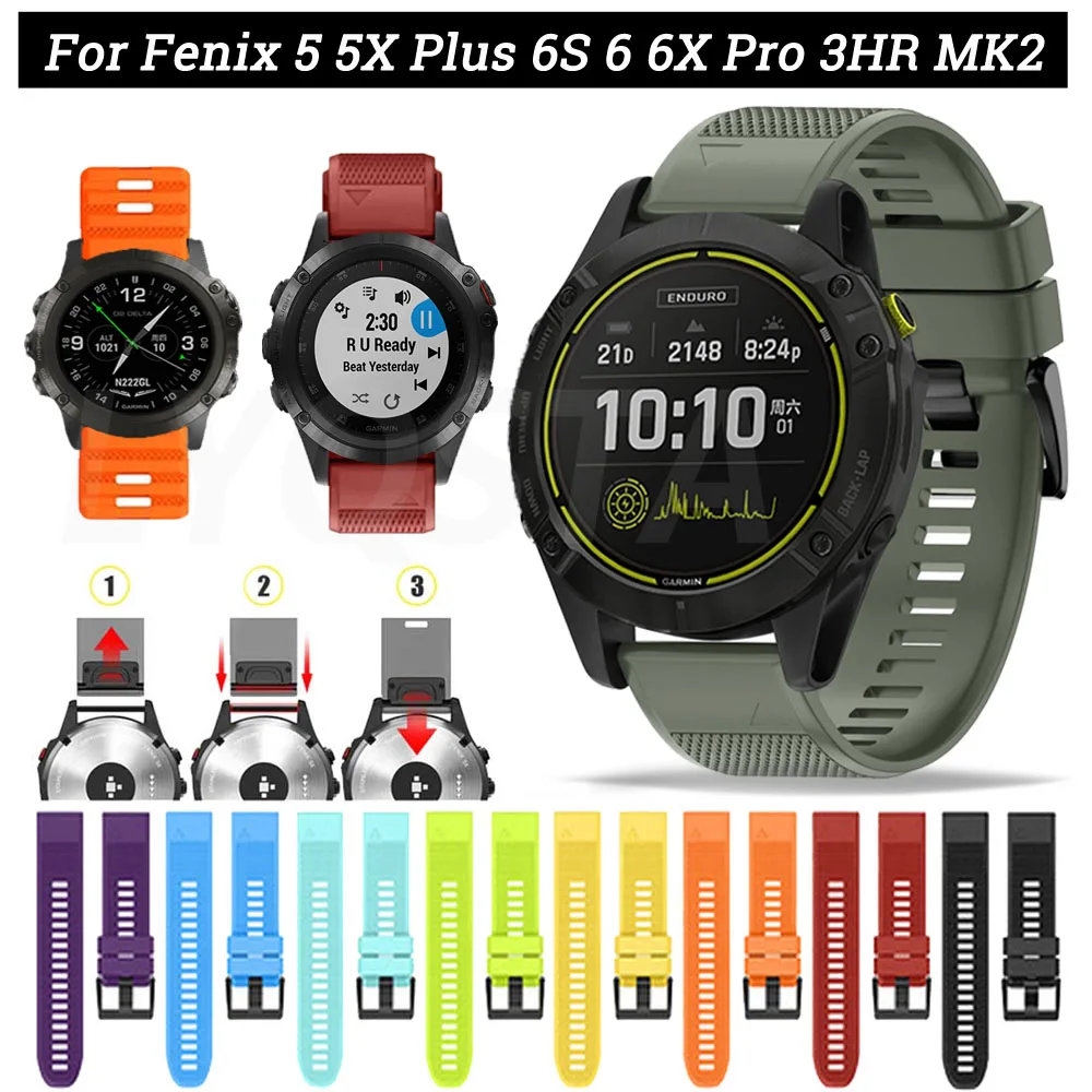 Ремешок для смарт-часов Garmin Fenix 6X 6 6S Pro, силиконовый быстр...