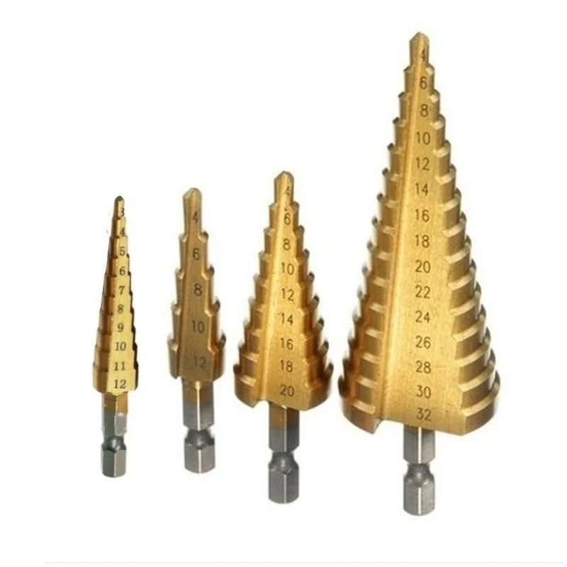 Сверло ступенчатое из быстрорежущей стали с титановым покрытием, 3-12 мм4-12 мм4-20 мм