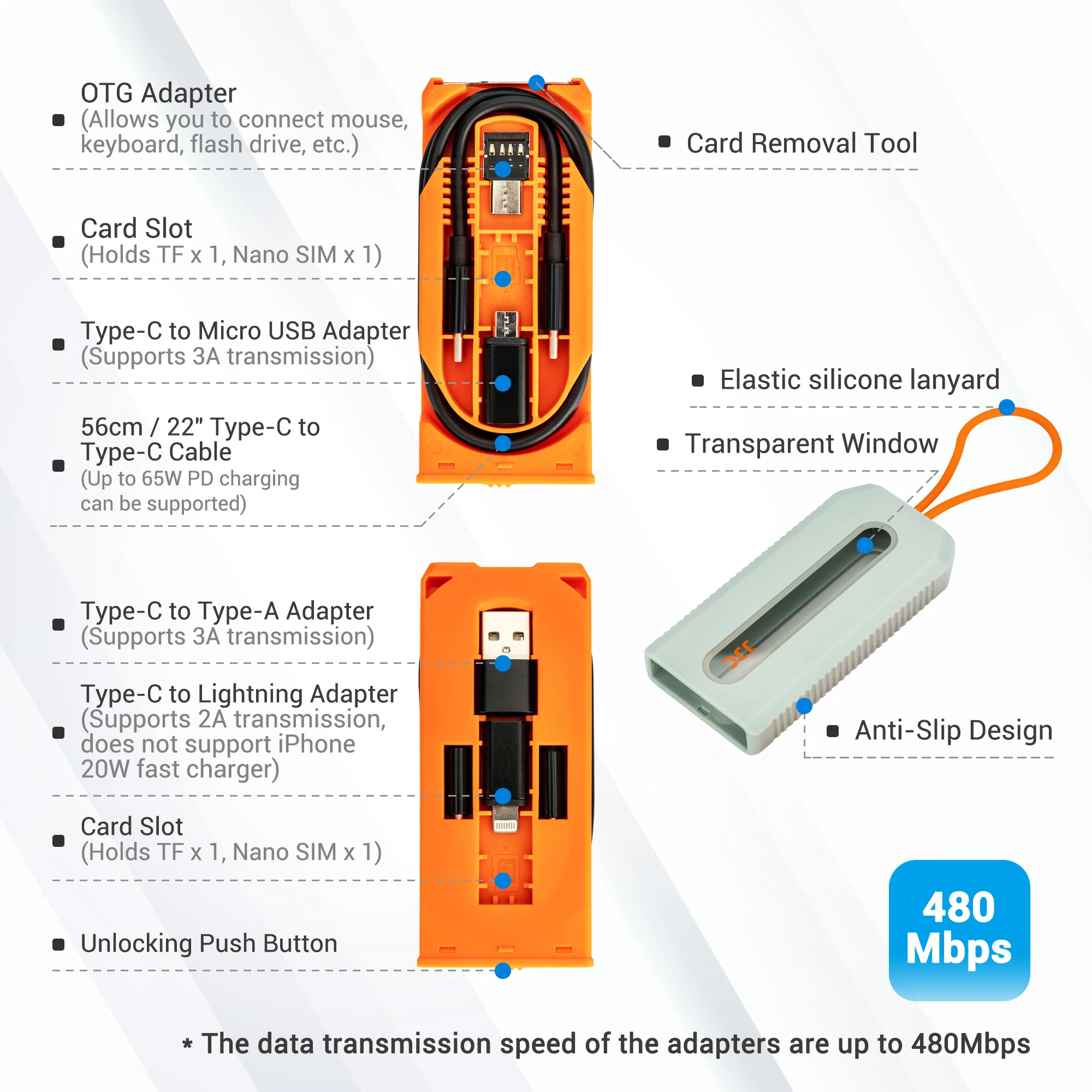 Набор карт для передачи данных с кабелем 22 "USB-C, дорожный светильник, карта для выживания в городе, USB адаптер, комплект, коробка для хранения кабелей, зарядка, передача данных для TF Nano SIM карты
