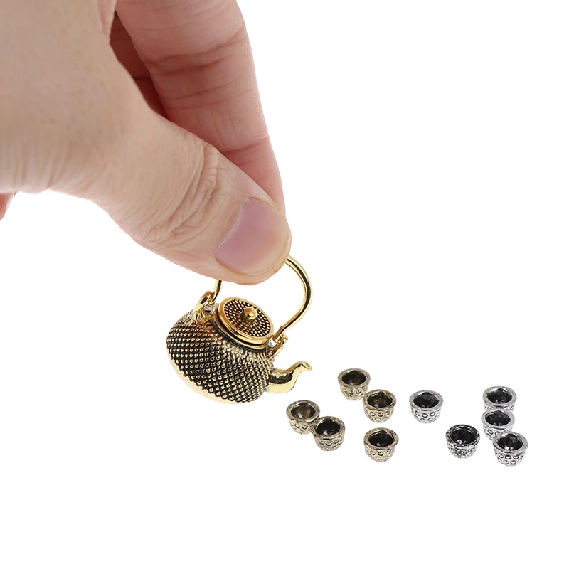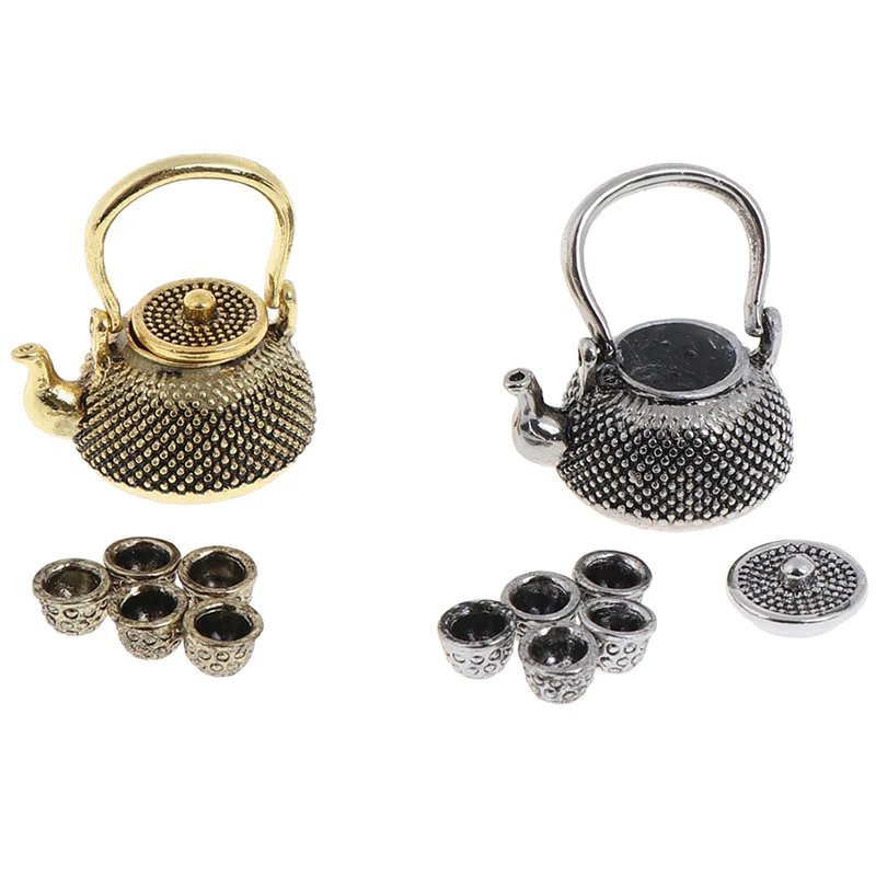 1: 12 миниатюрная обеденная посуда для кукольного домика, 6 шт., металлический чайный набор, чайная чашка, Детские Подарочные игрушки
