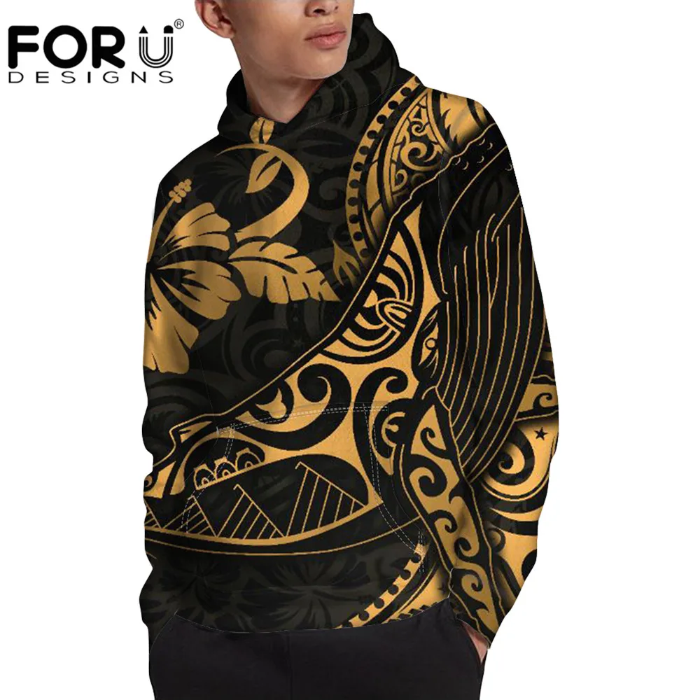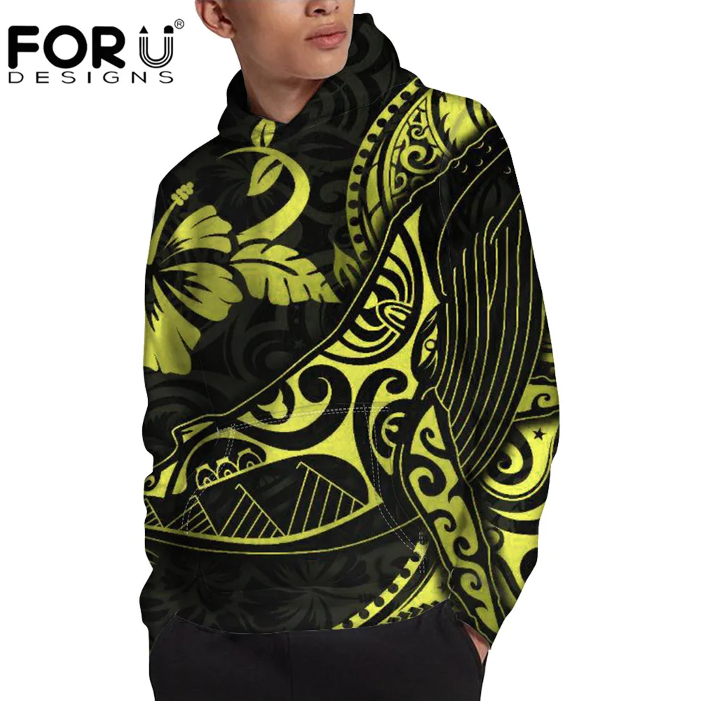 FORUDESIGNSполинезийский Золотой горбатый кит, мужские толстовки с капюшоном в гавайском стиле, унисекс, верхняя одежда для рыбалки, кемпинга