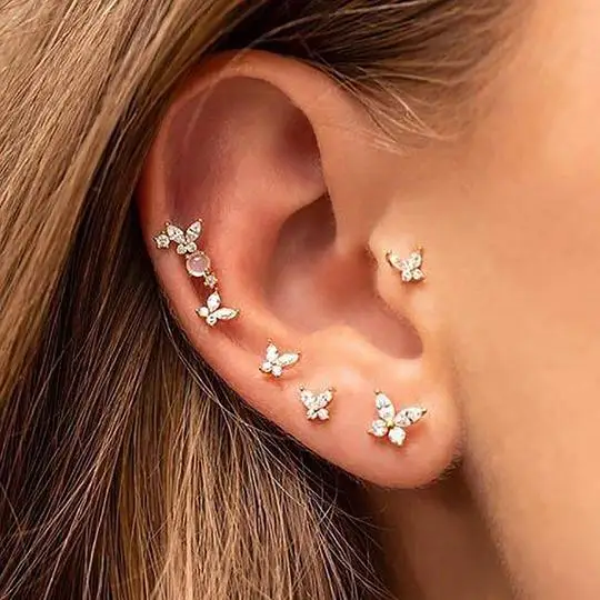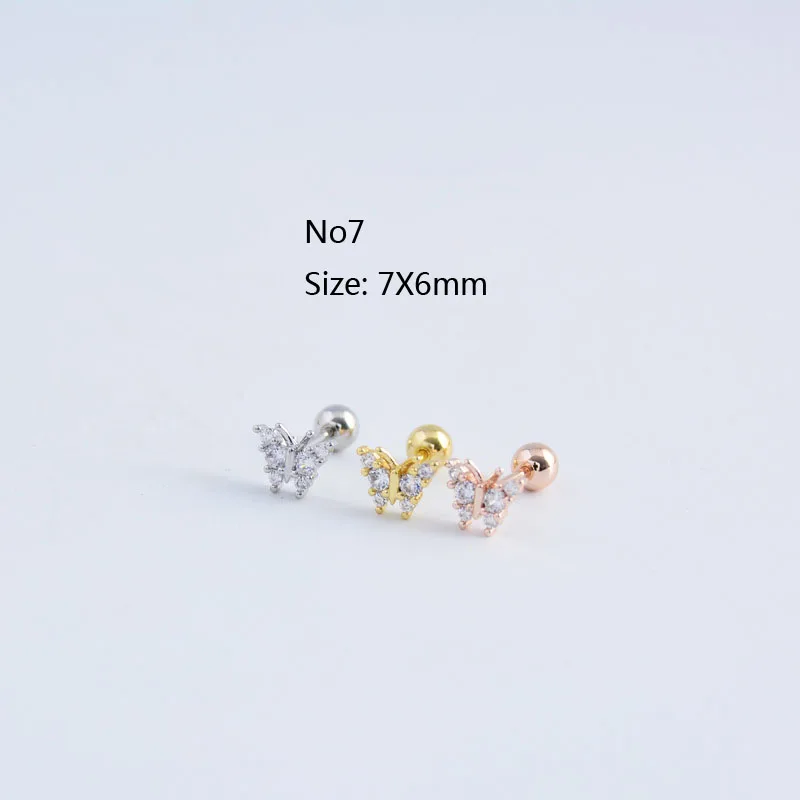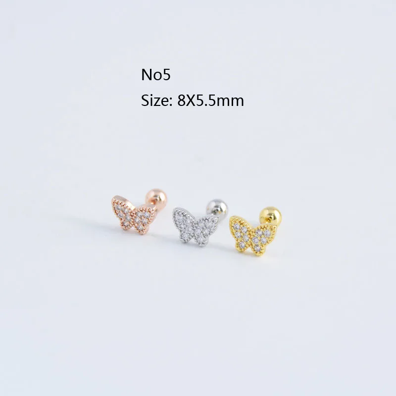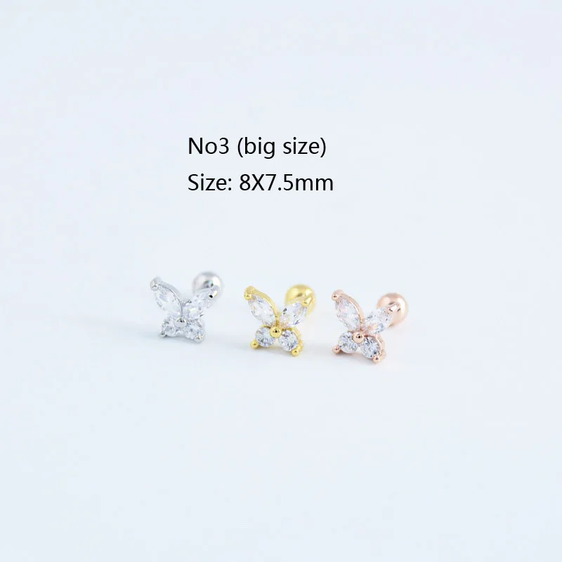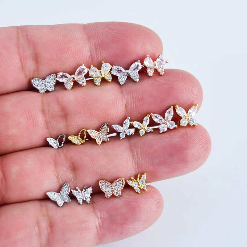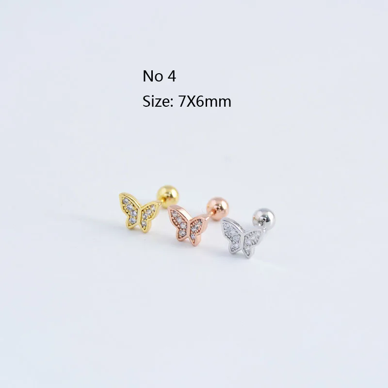 Серьги-гвоздики из нержавеющей стали в виде бабочки, 0,8 мм