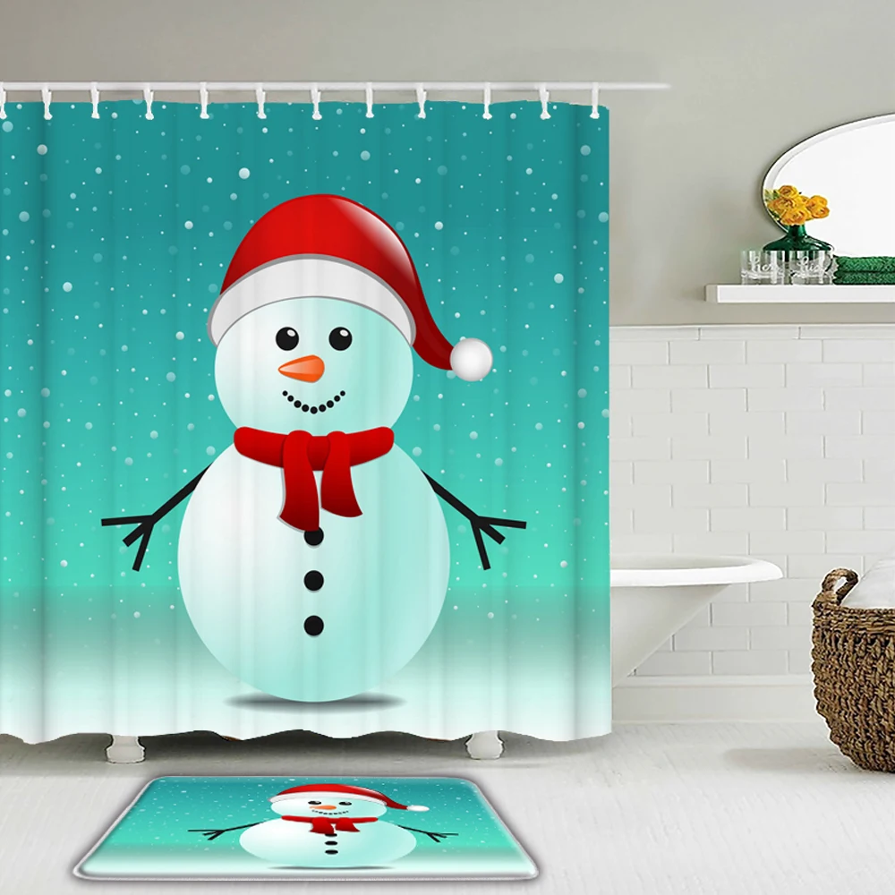 Занавеска для ванной с мультяшным Санта-Клаусом, снеговиком, оленем...