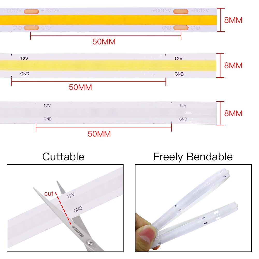 Tuya WiFi Smart Life диммер управления COB светодиодный ленточный светильник WiFi приложение DC 12 В 24 в 320 светодиодов гибкий FOB светодиодный светильник s RA 90 Светодиодная лента декоративная