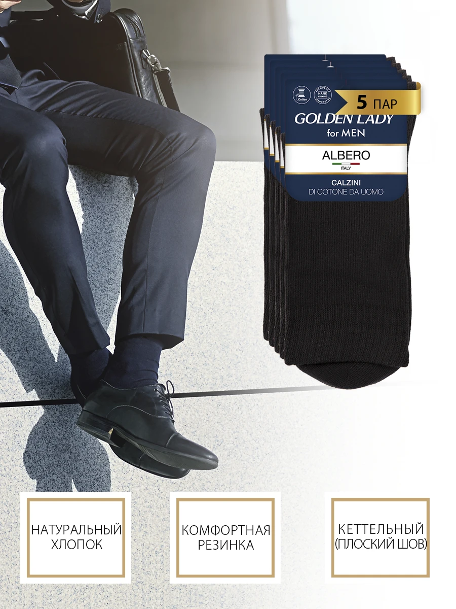 Носки мужские GOLDEN LADY ALBERO, набор 5 пар, классические, всесезонные, спортивные, высокие, из хлопка