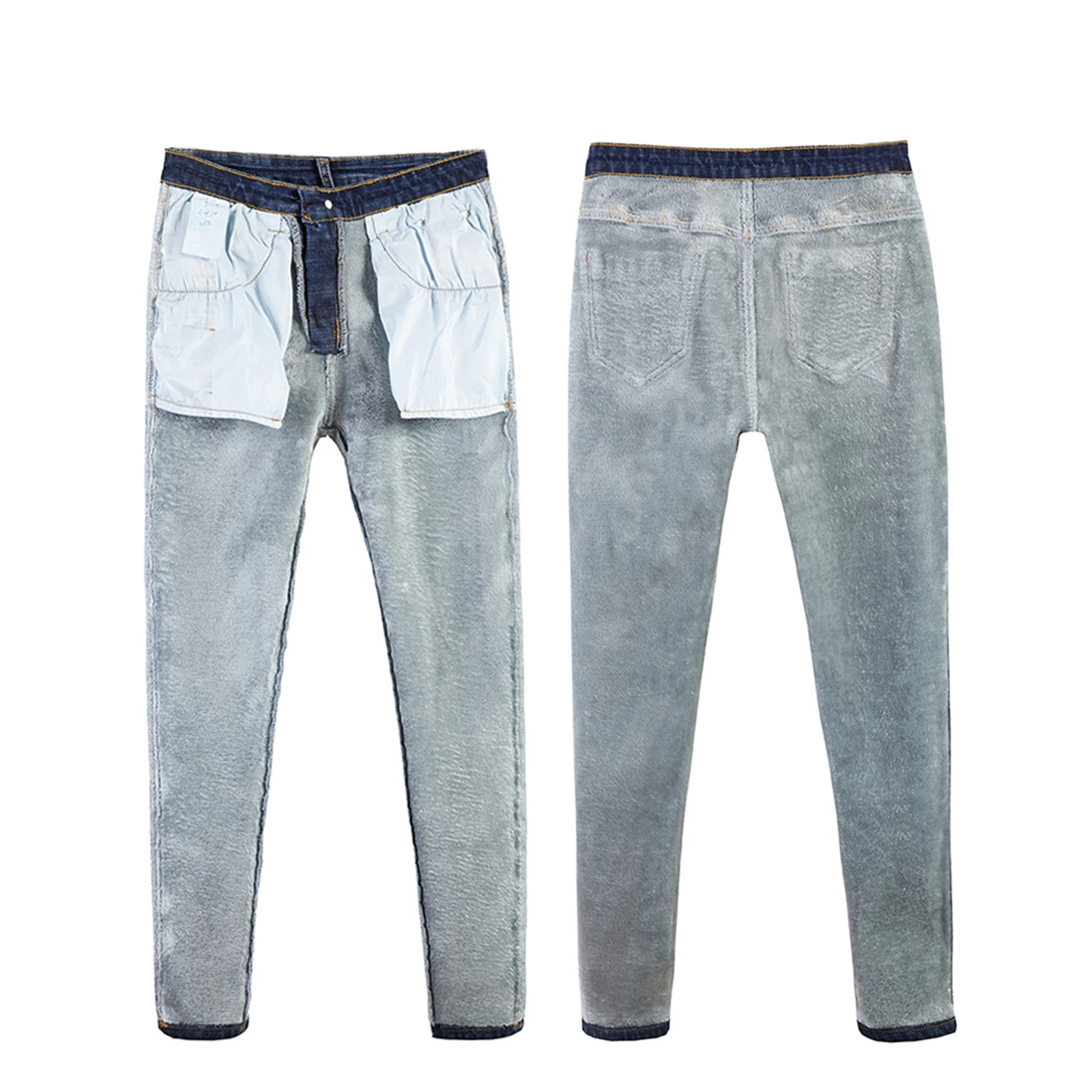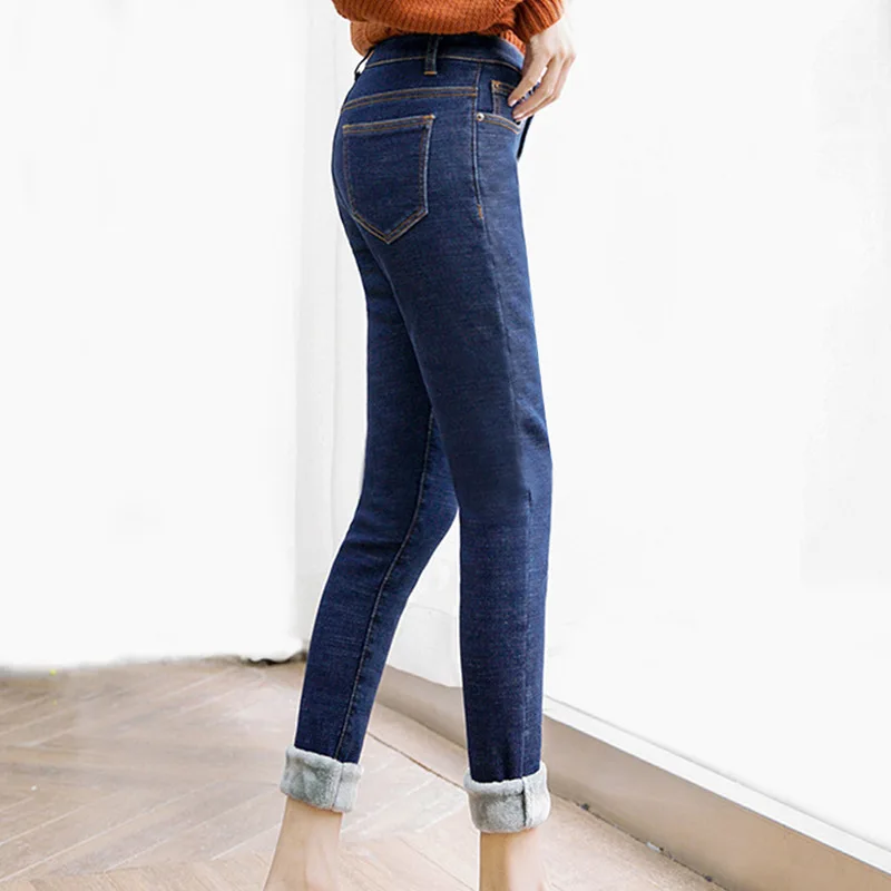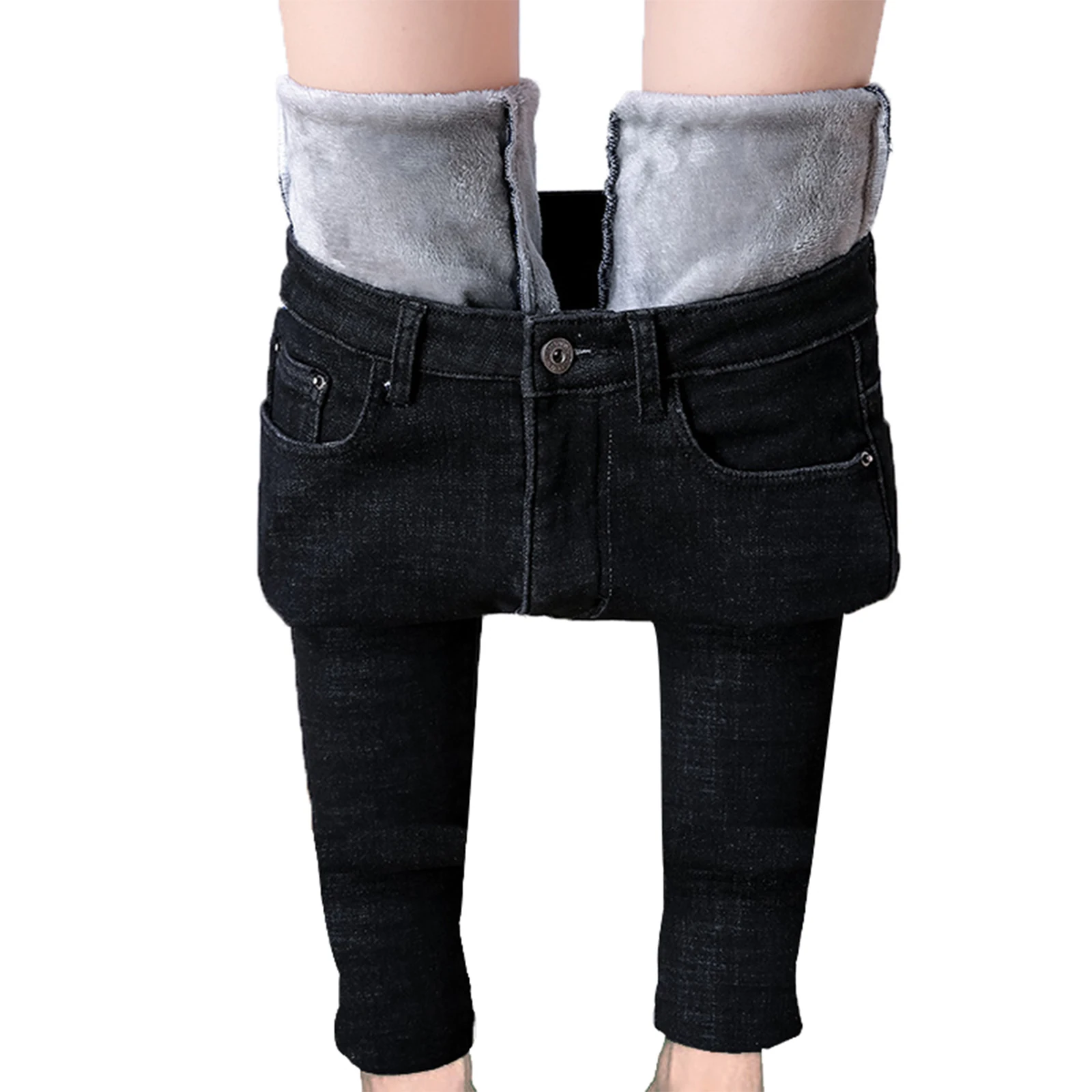 Женские зимние утепленные джинсы, теплые флисовые джинсовые брюки, однотонные джеггинсы с завышенной талией, эластичные облегающие брюки-карандаш